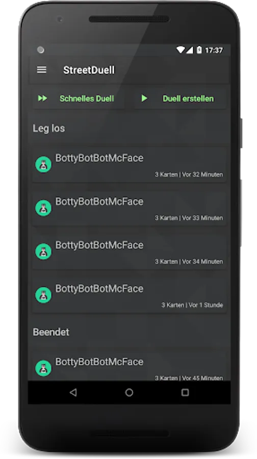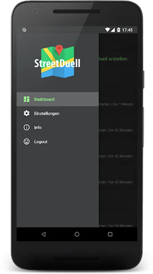 In Street Duell you start at a random point in the world. Using Google StreetView you have to explore your surroundings to find out where you might be. When you are sure, you set a marker point on the world map. If your marker is closer to the real location than your opponent, you win the round.