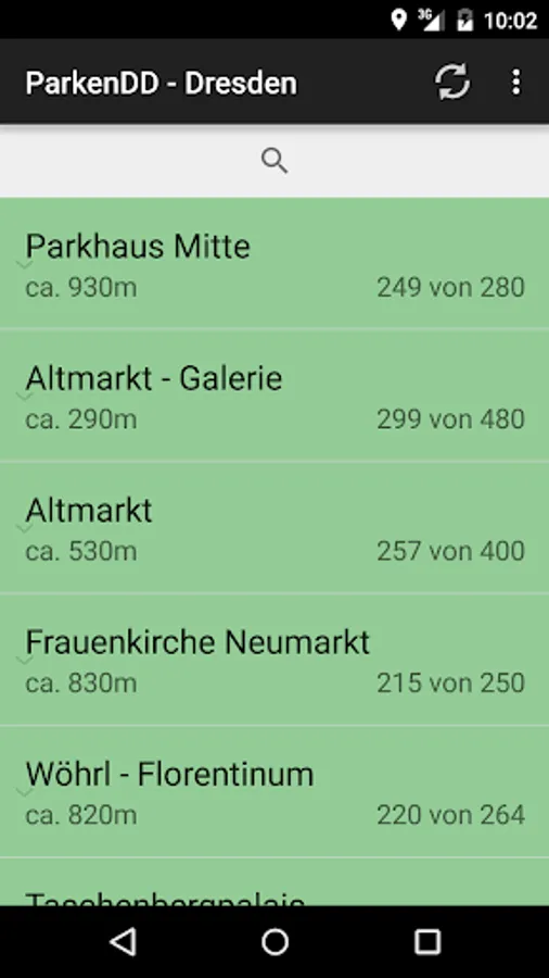 ParkenDD is an open source parking app for Dresden and other cities that uses open data. The app also uses an open source backend, called ParkAPI which uses an open json API to transfer data.