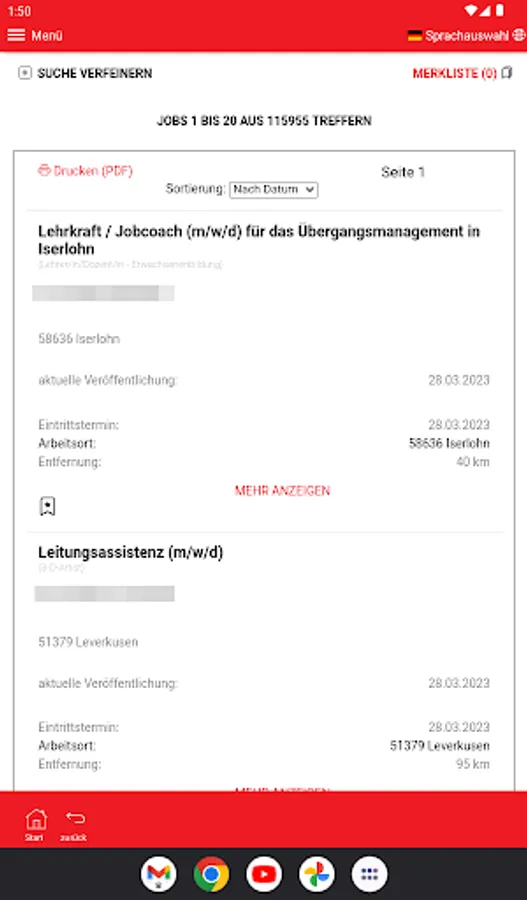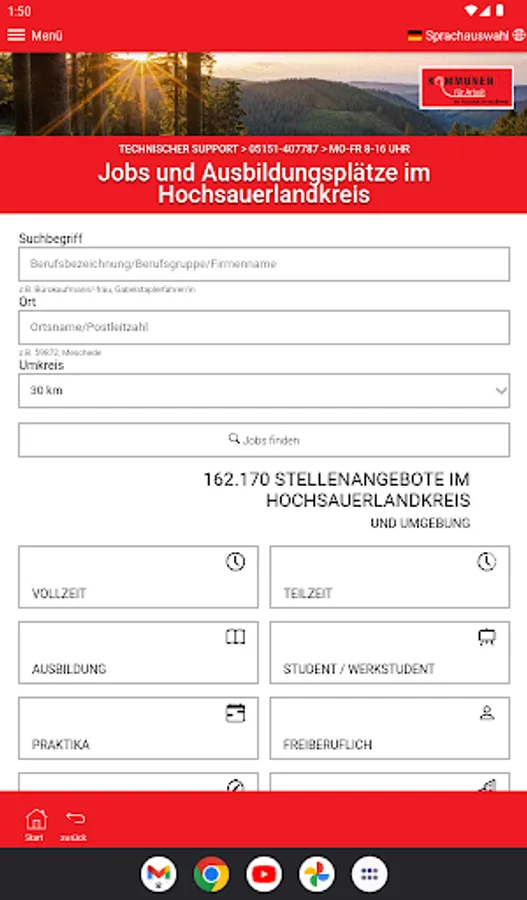 Use the Hochsauerlandkreis job portal app now and find jobs from over 100 job boards.