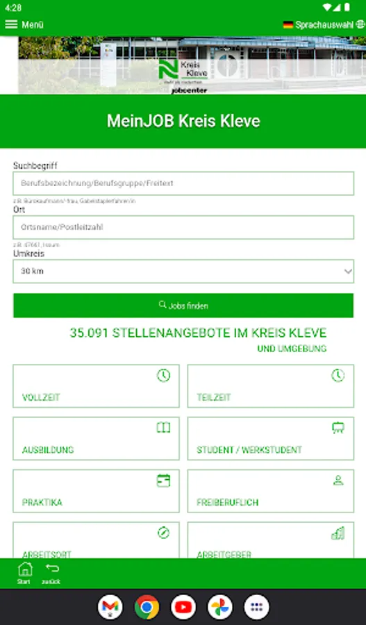 Use the MeinJob-Kreis-Kleve APP now and find jobs from over 100 job boards.
