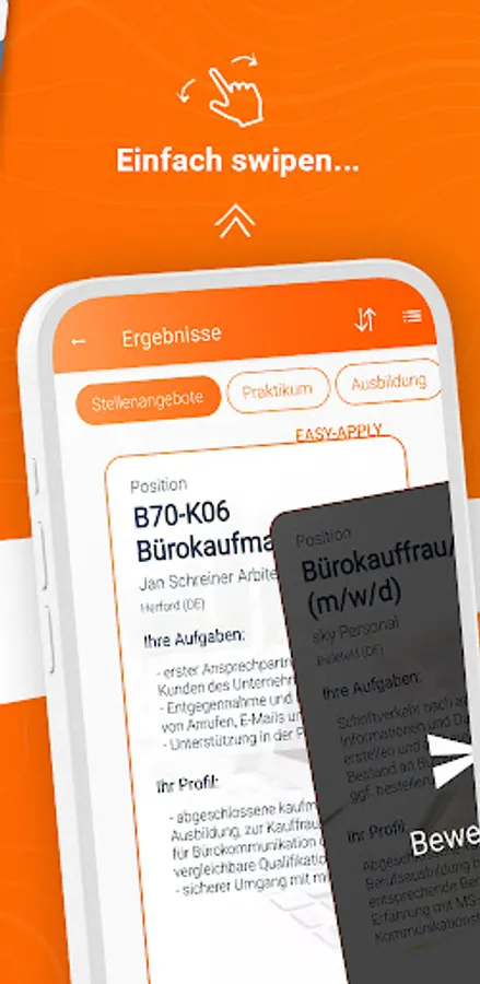 - Job offer interesting? Swipe to the right and apply directly - also on mobile with just one click!