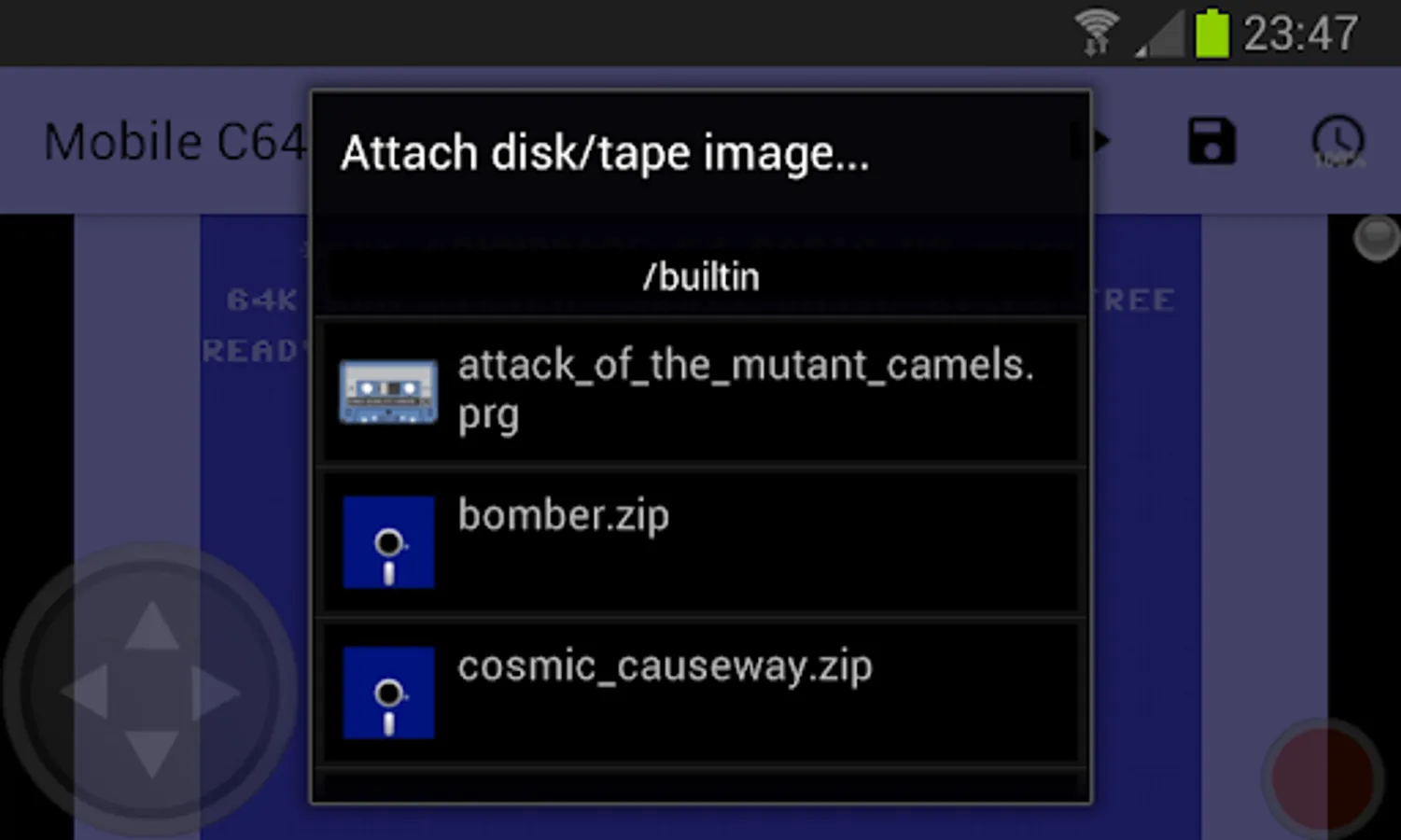 Emulator for the popular 80's home computer C64. Can be controller via touchscreen, trackball, keyboard and/or external USB/bluetooth controllers. Offers an on-screen keyboard for text input. Comes with some Public Domain games, f.e. Elite, Kickstart oder Attack of the Mutant Camels, ready to play! Other games can be added to the SD card and played from there.