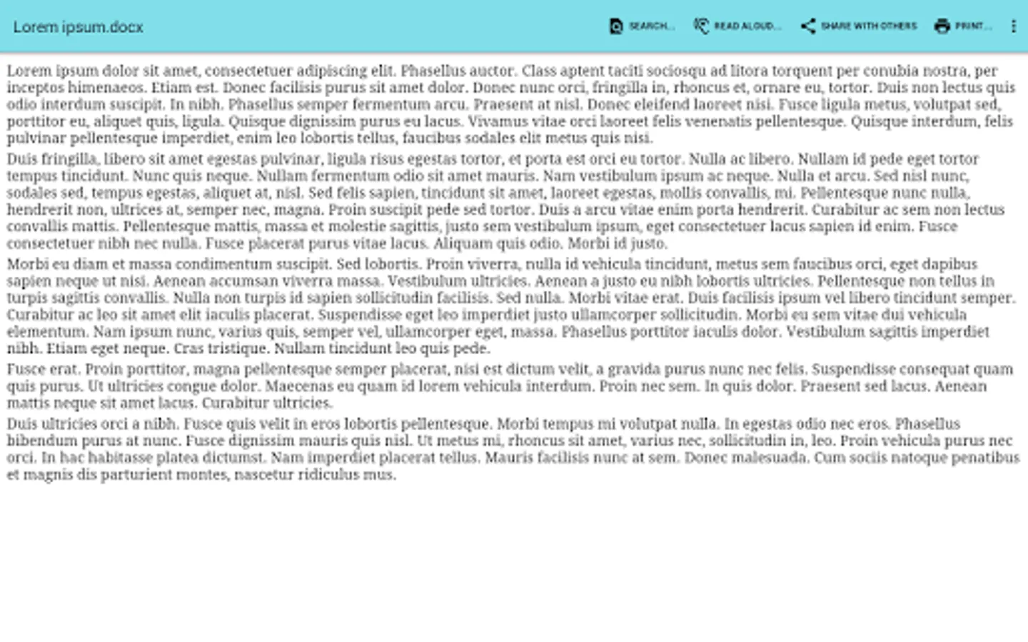 - reading text documents (.odt, .sxw, .docx, .doc) aloud via Android's text-to-speech functionality