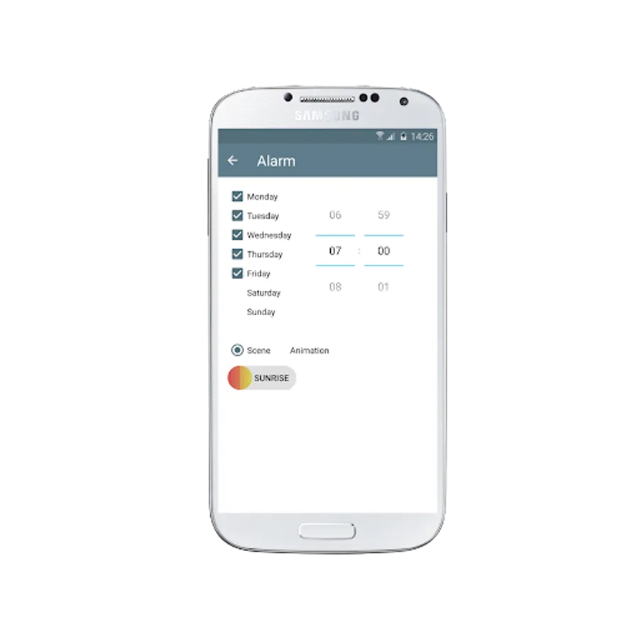-You can use a sunrise animation to trigger an alarm. Which gives you the feeling about a sunrise in your room