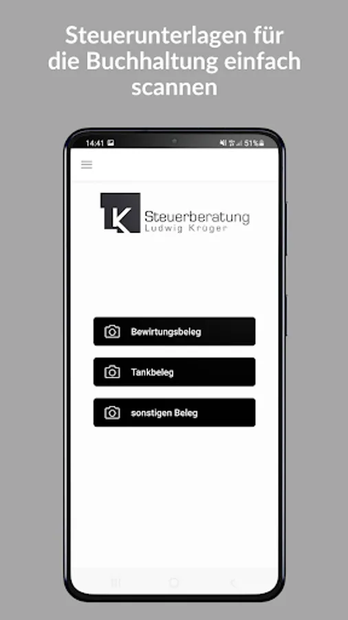 With the ScanApp from LK-Steuerberatung you can easily and securely scan all tax-relevant information for accounting. Thanks to the fast entry of hospitality receipts and fuel receipts, you can digitize them quickly and easily and save time for tax advisors. Only for clients of LK-Steuerberatung.