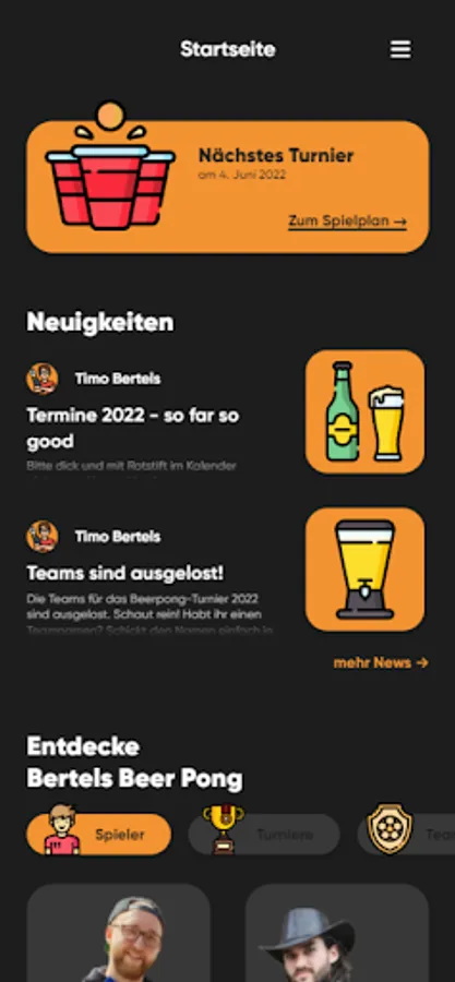 Experience the Bertels Beer Pong Club in a new design and get all the information and results of the annual Bertels Beer Pong tournaments with the following features: