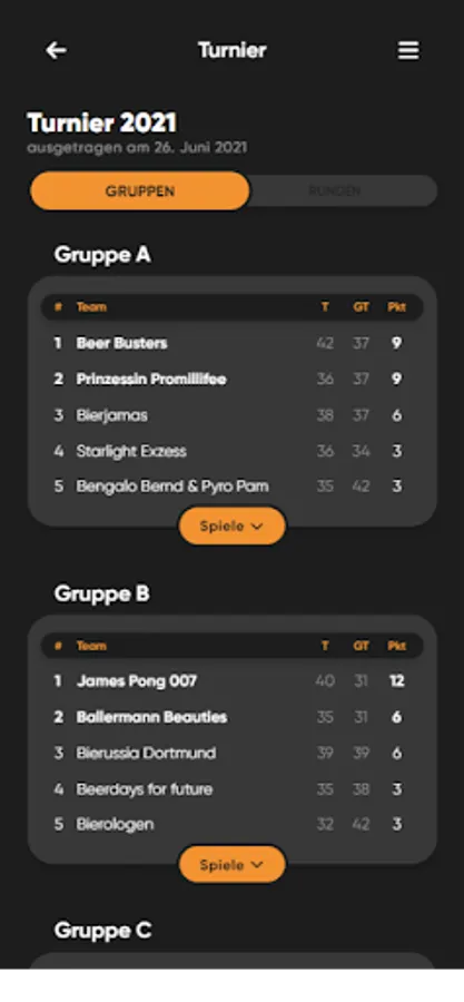 - Comprehensive tournament overviews with all groups, rounds & results as well as title winners.