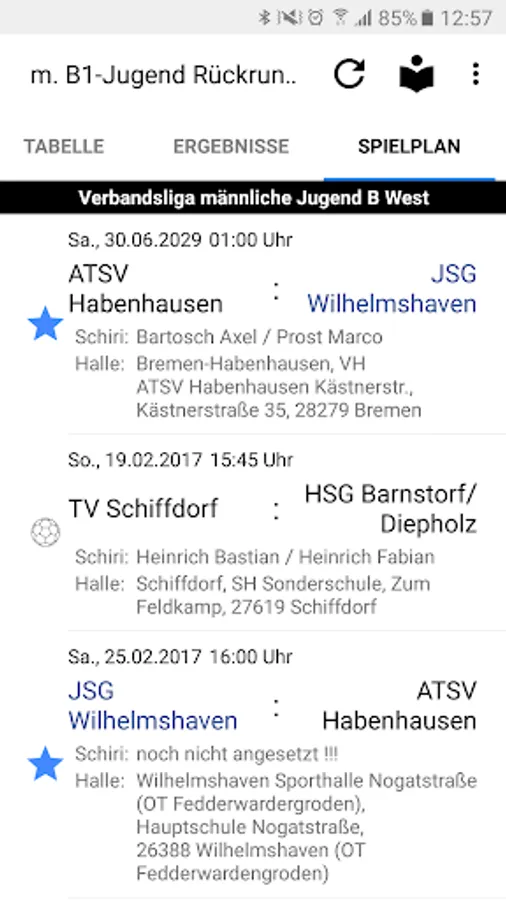 - Match Calendar to display the next home games all JSG Wilhelmshaven Teams