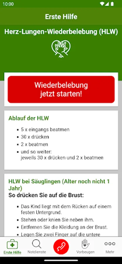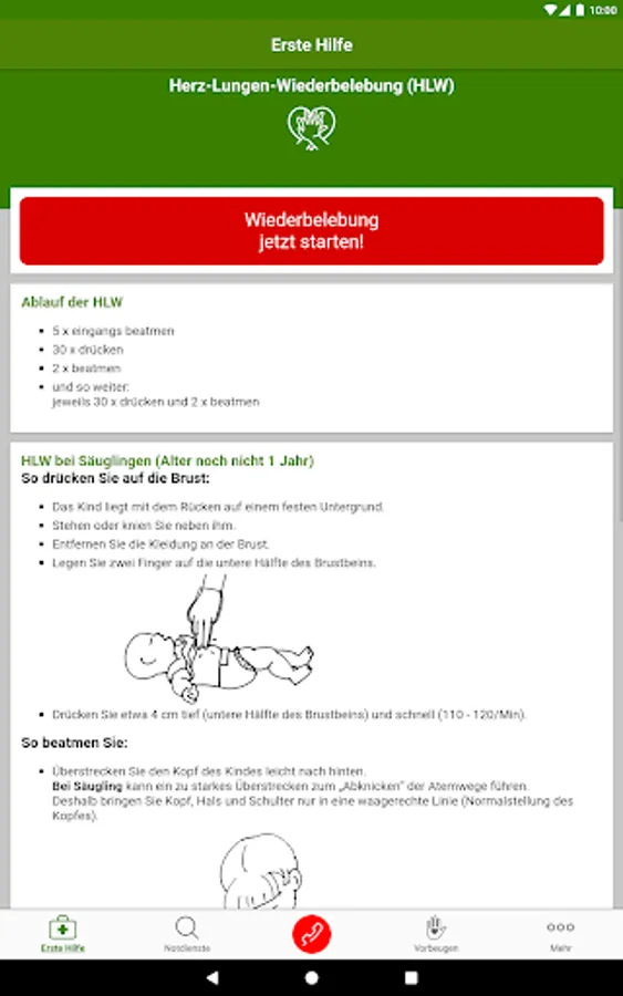 The app is based on national and international guidelines of the European and German Resuscitation Councils as well as the information and experiences of the nationwide "First Aid for Children" courses of the Johanniter-Unfall-Hilfe. The University Hospital Münster is the scientific partner for the development of the app. The children's emergency app is a guide for young parents and everyone who deals with children, and is intended to help safely apply skills previously learned in a first aid course.