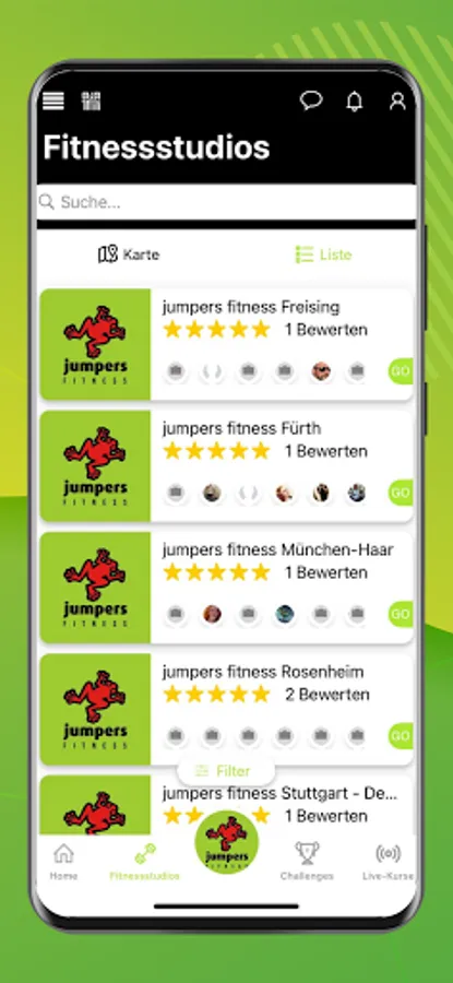 You can be proud of what you have already achieved and will achieve. Be proud of your body and share your success with your very own jumpers community. Meet other fitness athletes and exchange ideas. Motivate each other. In the jumpers fitness app you will also find all information about the fitness lifestyle and your jumpers fitness studio.