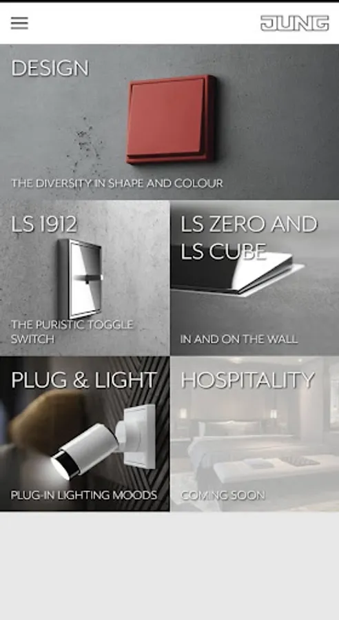 This all functions of course not only with the switches and sockets from the JUNG design range: KNX operating elements, USB charging stations, Smart Radio DAB+, spotlights and floodlights from the Plug & Light system - with the JUNG app, you can have a realistic experience of over 2,000 models from the versatile JUNG product world. AR Studio also provides valuable background knowledge and selected reference photos of the individual products.