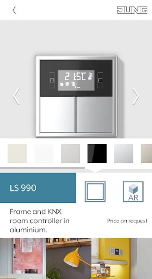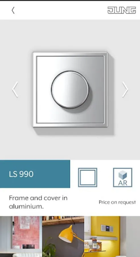 The JUNG AR Studio app is a creative planning tool which you can use to place JUNG products virtually inside your own four walls. Surfaces, materials and colours can be experienced in a photorealistic display. At any time and wherever you are, you can use this app for the optimum display of JUNG switch ranges as well as materials and colour variants in the room and thus create the perfect interior design concept.