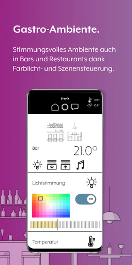 Please note that this app only functions in connection with a JUNG KNX Smart Panel 8 and an active WLAN connection in the home network.