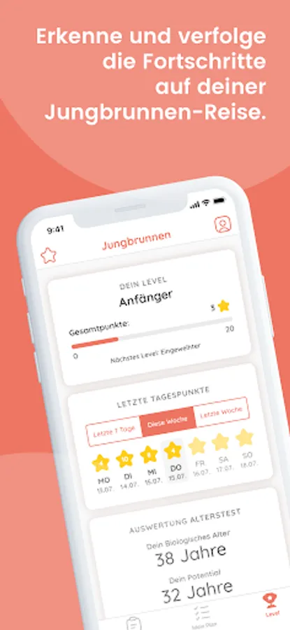 Your individual, daily training plan will be created just for you and according to your requirements. To do this, we first ask about your status quo with a scientific age test. Your progress is measured in the app.