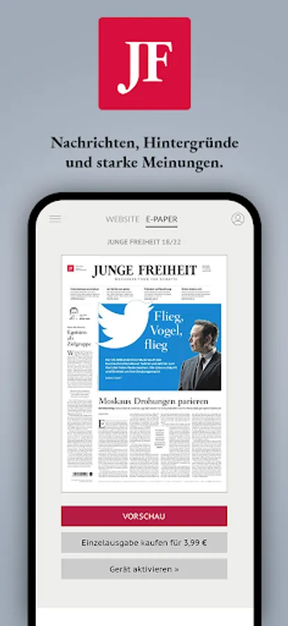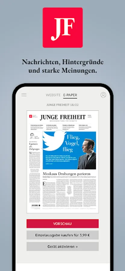 JUNGE FREIHEIT publishes information from Germany, Europe and the world. It brings news from economy, environment, culture, history, science and media.