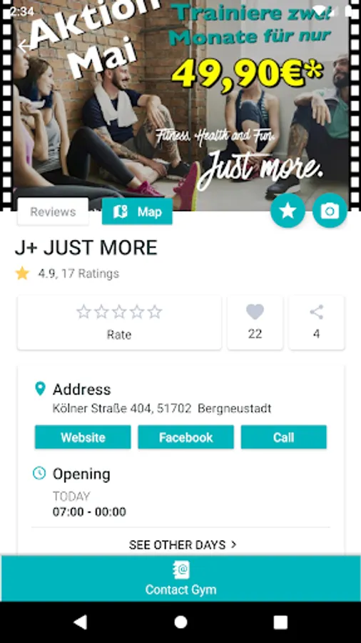 The app for all members of Just More gym. No matter what club you train in, that's your app. Here you will find all the information about your studio. Are you in another city looking for a Just More gym? This is no problem with our practical overview of all studios. In addition you have direct access to the training plan created by your coach on site and you are always up to date with the integrated push messages. The whole world of Just More gym in one app.