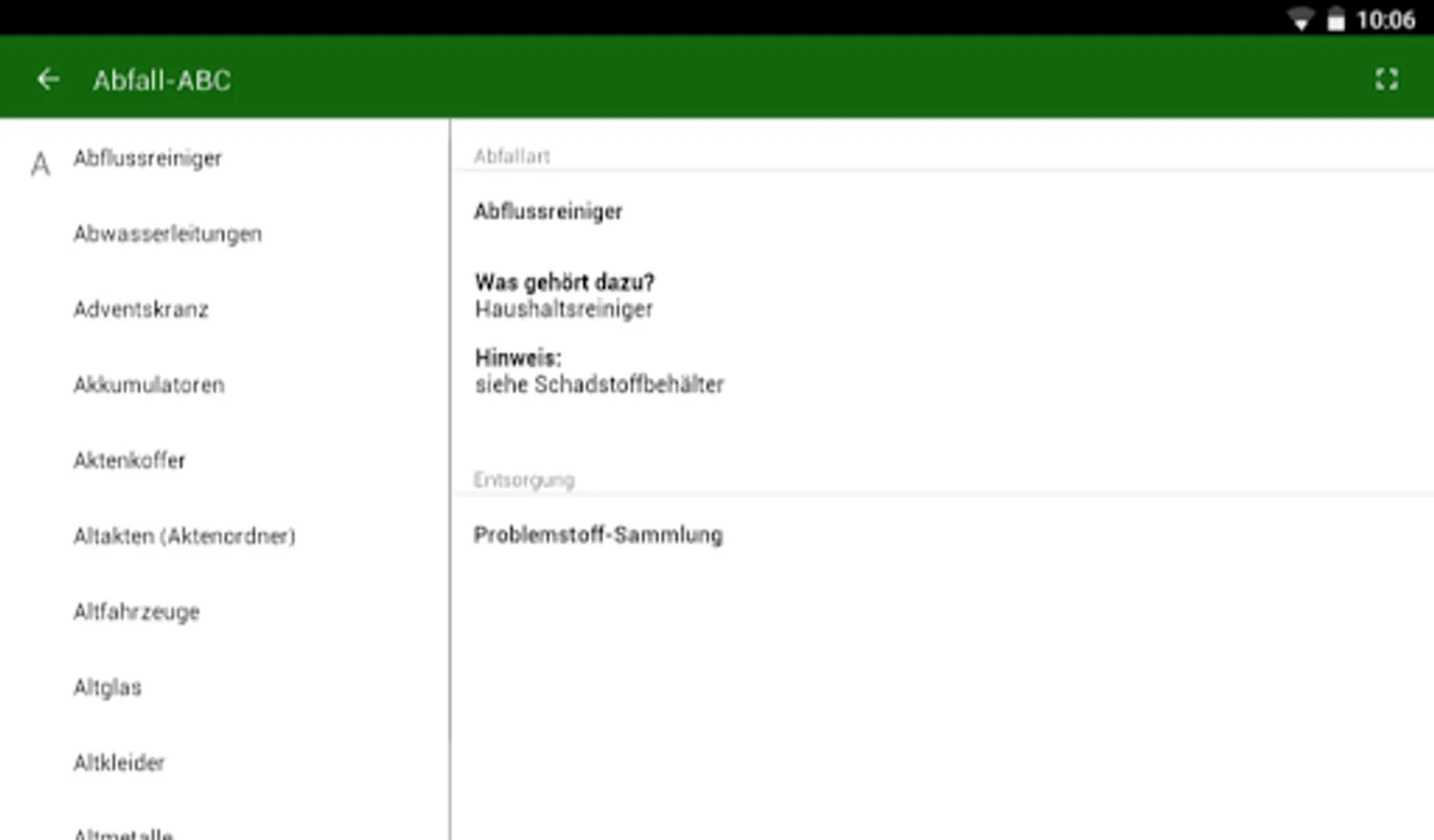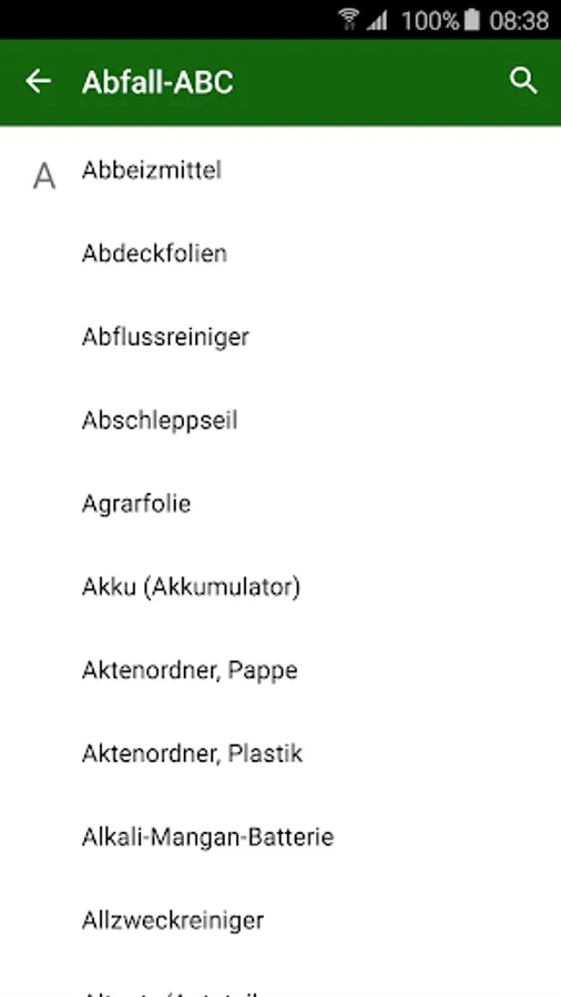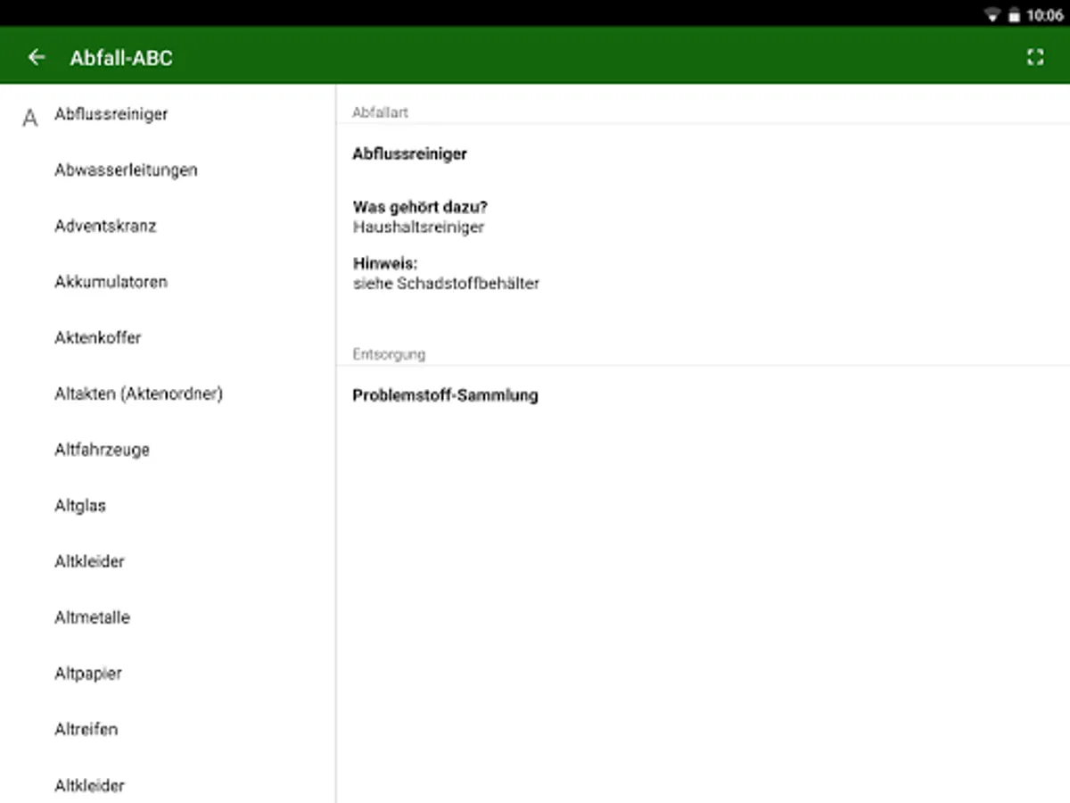 You can find a lot of information about the individual types of waste in the Info area. Waste from A-Z also offers you a lot of information about waste.