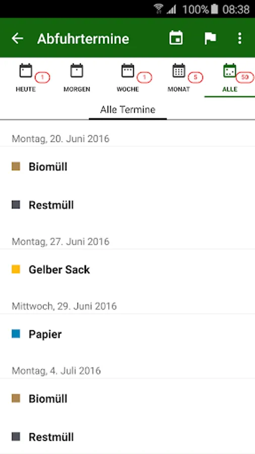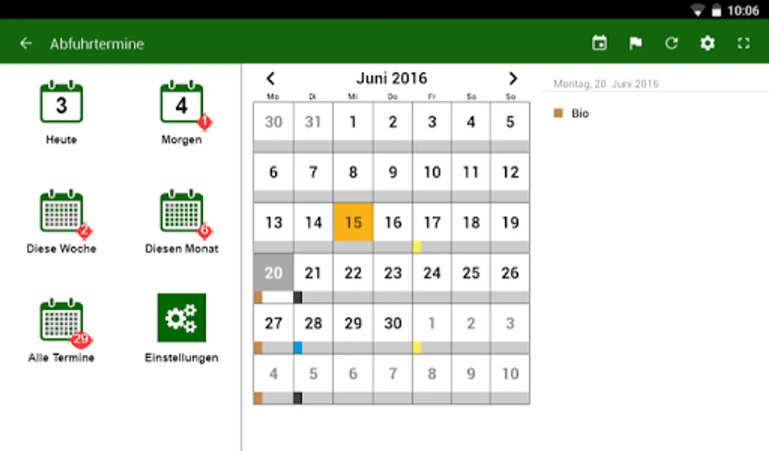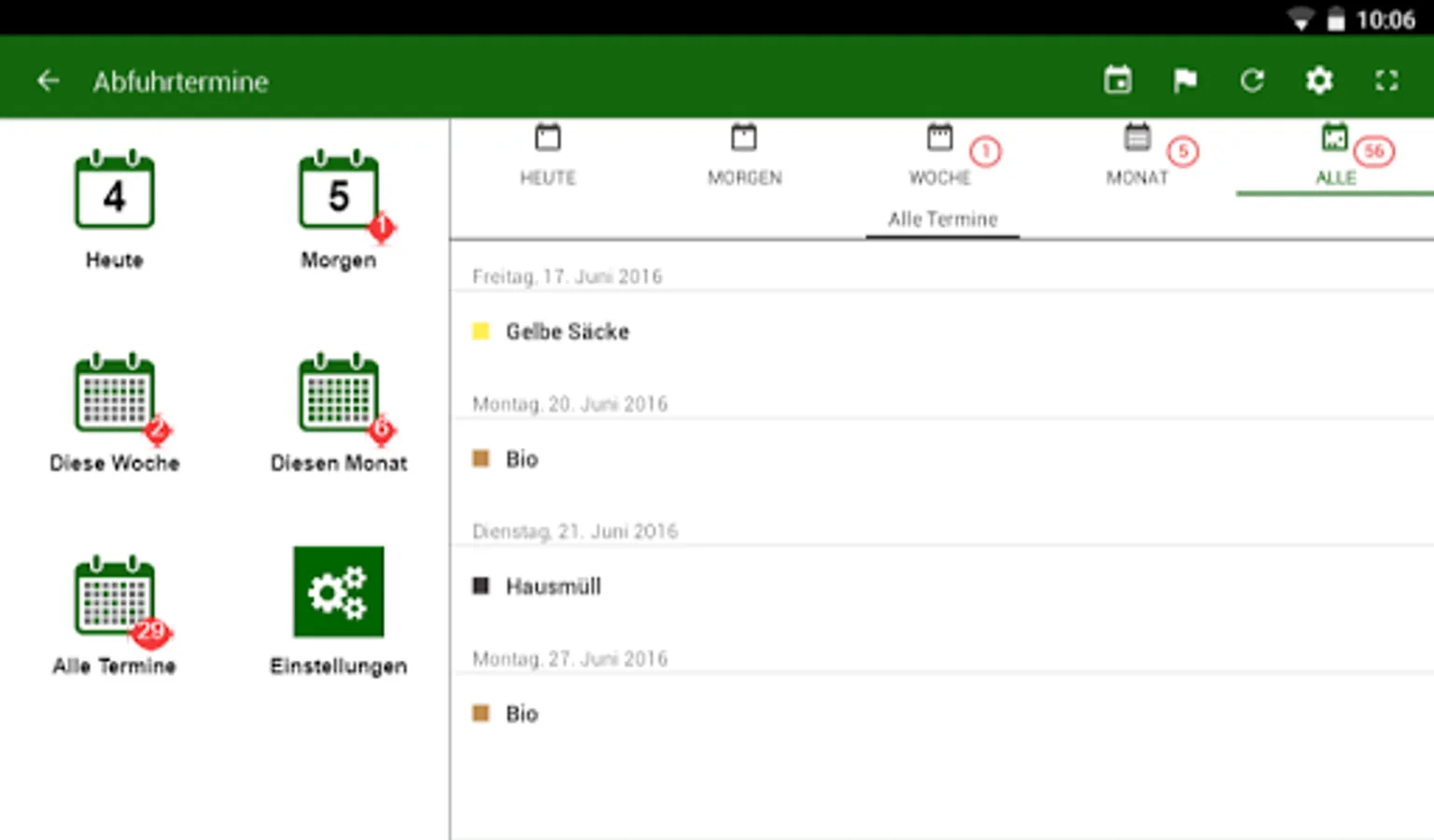 4. Adjust waste filter, eg residual waste, biowaste, waste paper, etc.