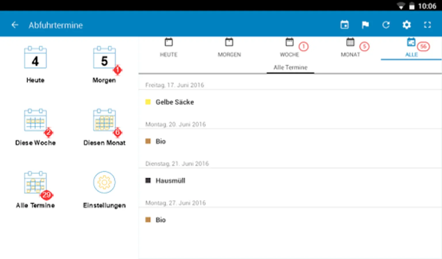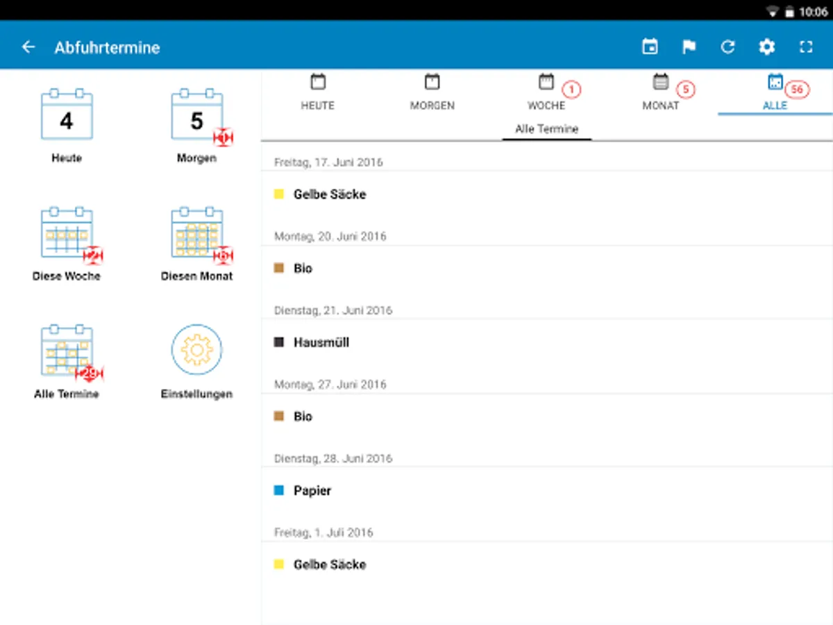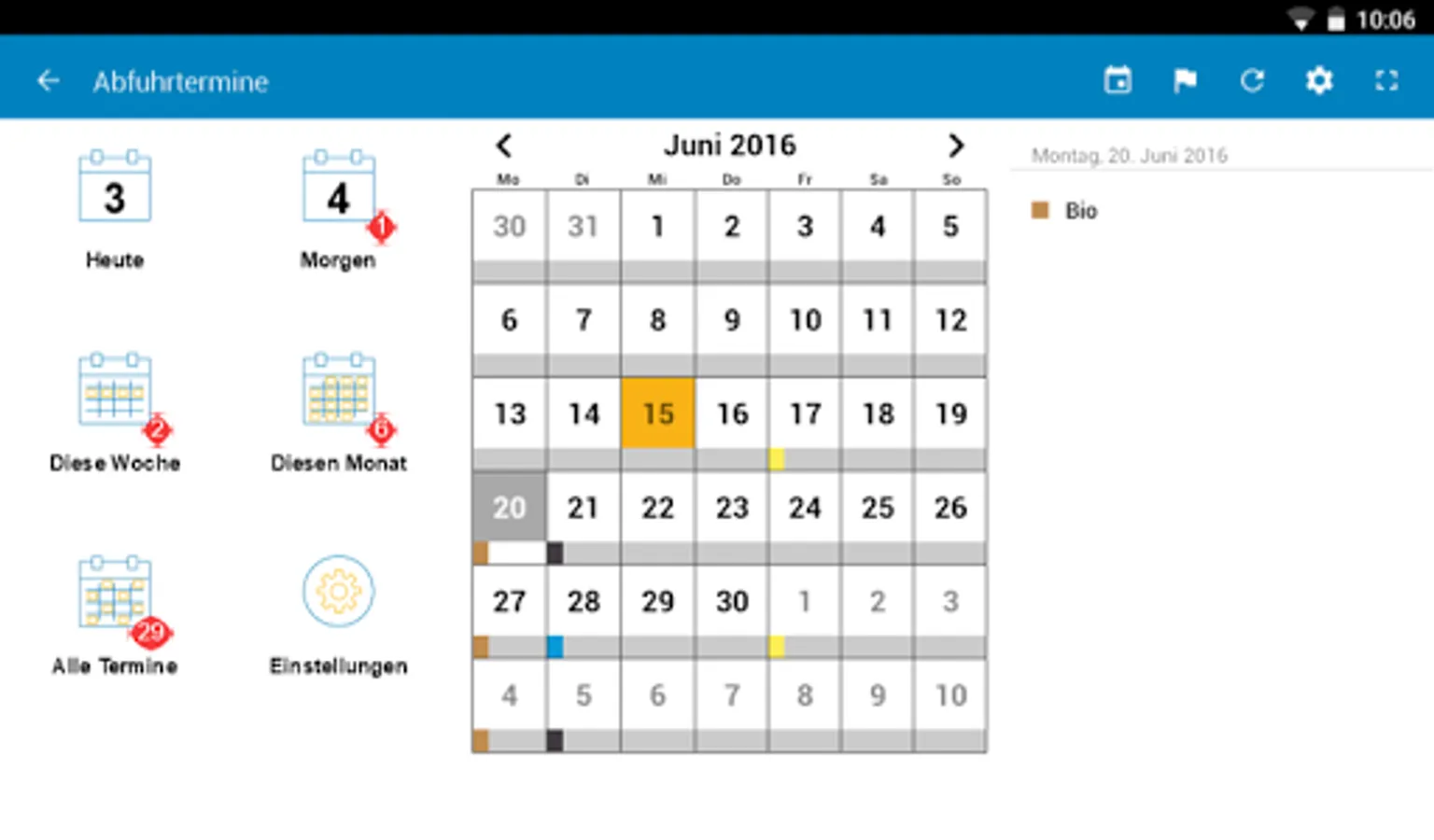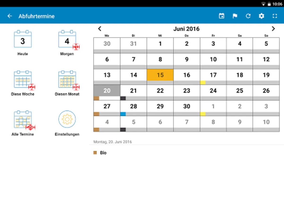 With the alarm clock, you have the dates at a glance. For more plots. Here, all the postponements by holidays and the weekly removal of organic waste bins (if available) are taken into account.