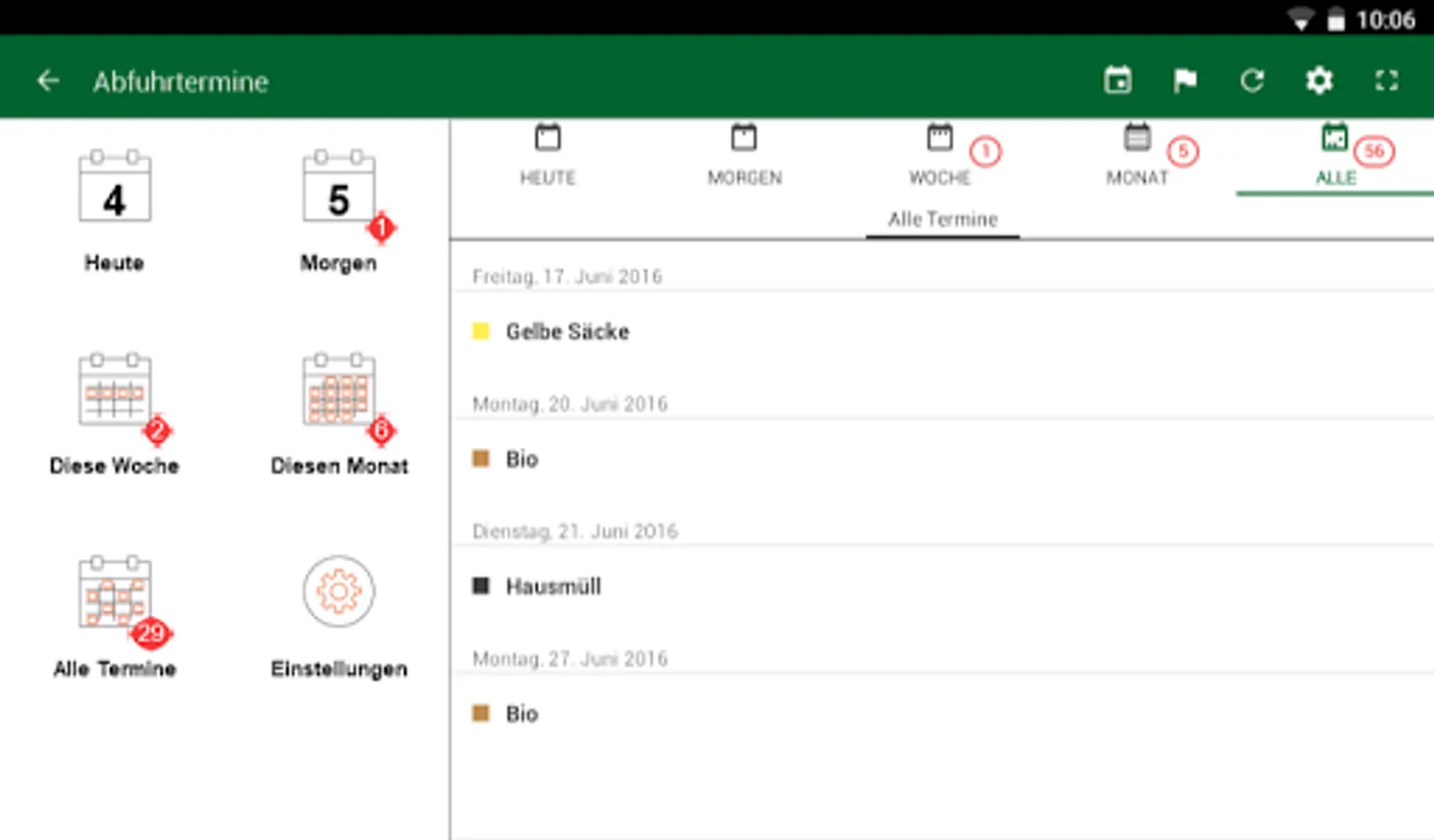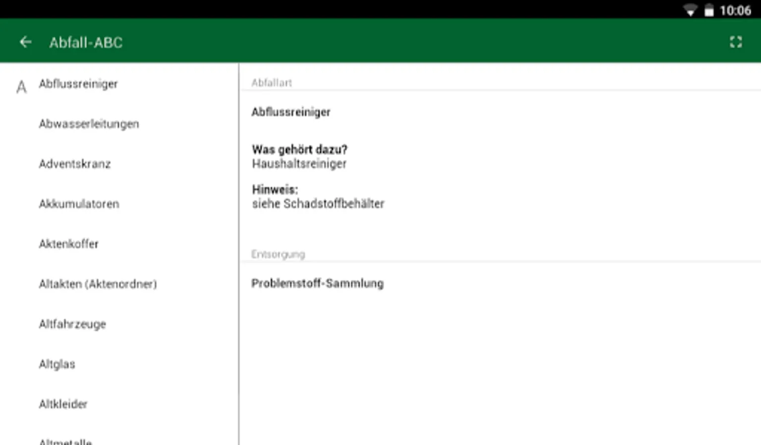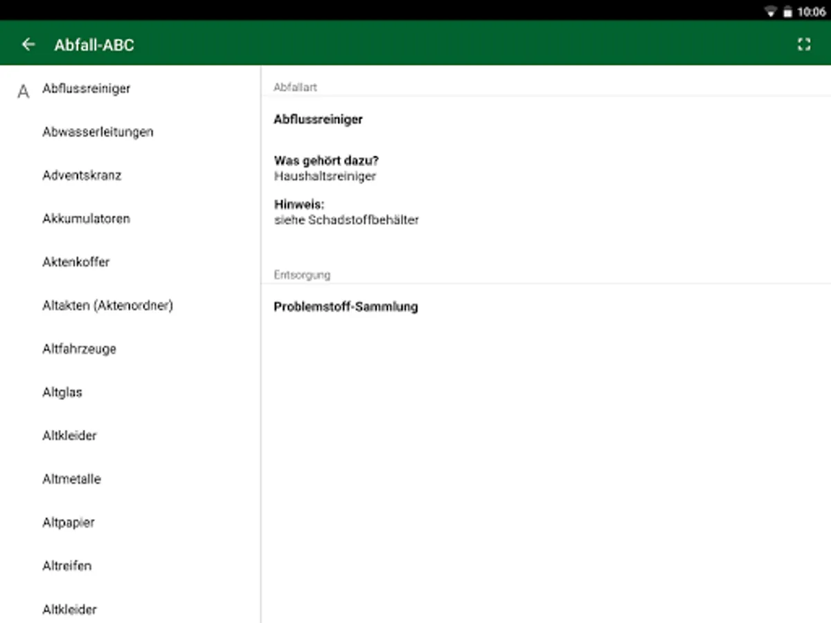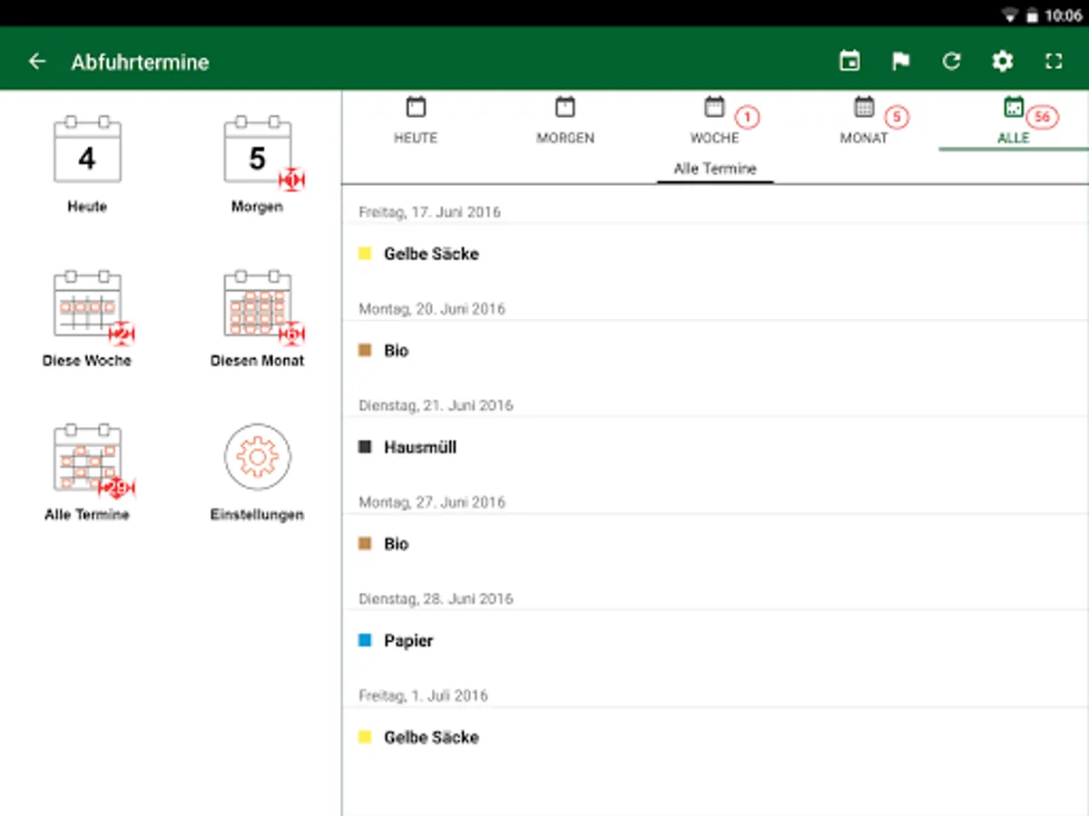 Residual waste, organic waste, paper, yellow waste containers when the containers are emptied? Free, accurate and fast app for the circle economic operation is in response Salzlandkreis. use of reminders and good time at the removal date the proper waste container ready. the citizen / customer If a change occurs informed. In addition, the app also provides information about additional held collections, such as pollutants and green waste collection in spring and autumn. The waste App is an innovative service of municipal waste management in Salzlandkreis. For locations and opening times of recycling centers and get information about the adoption of the types of waste.
