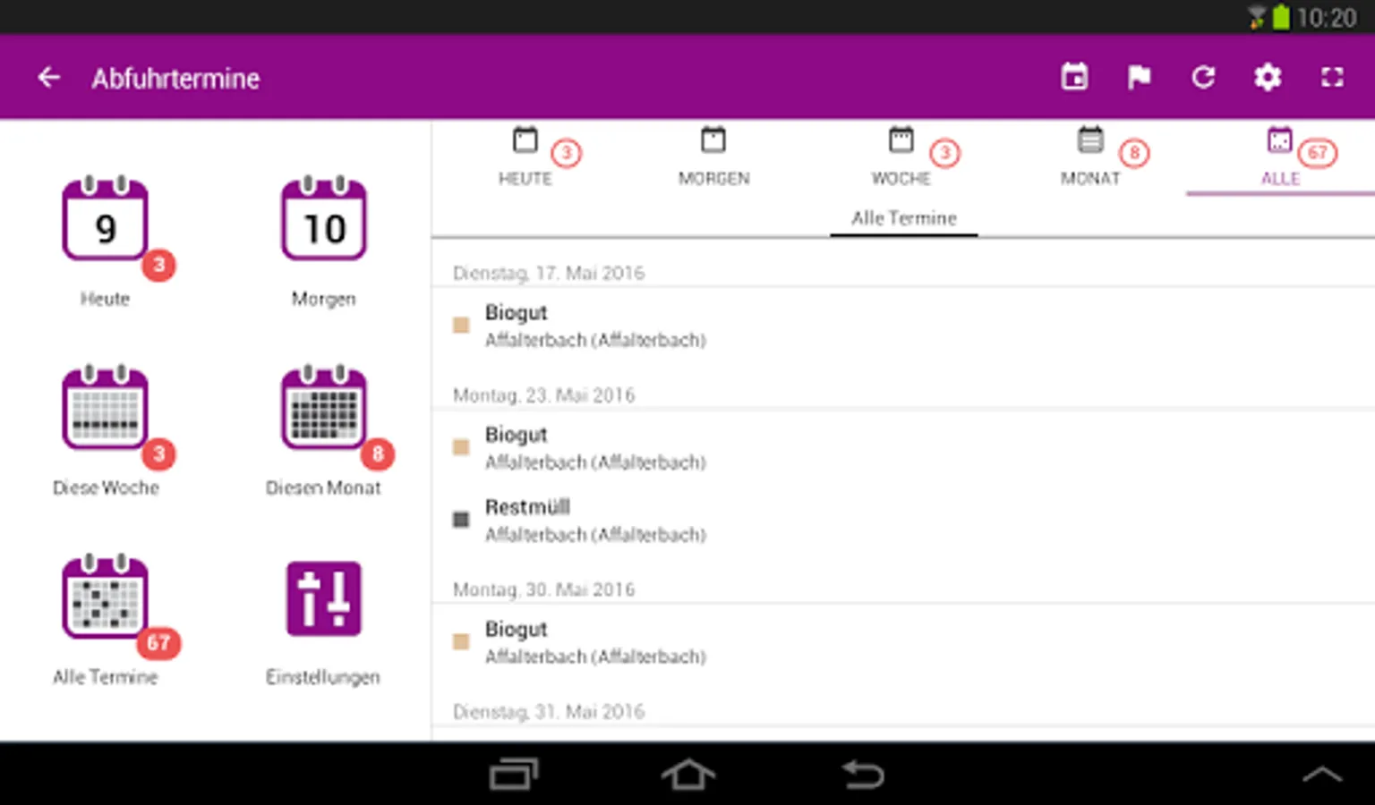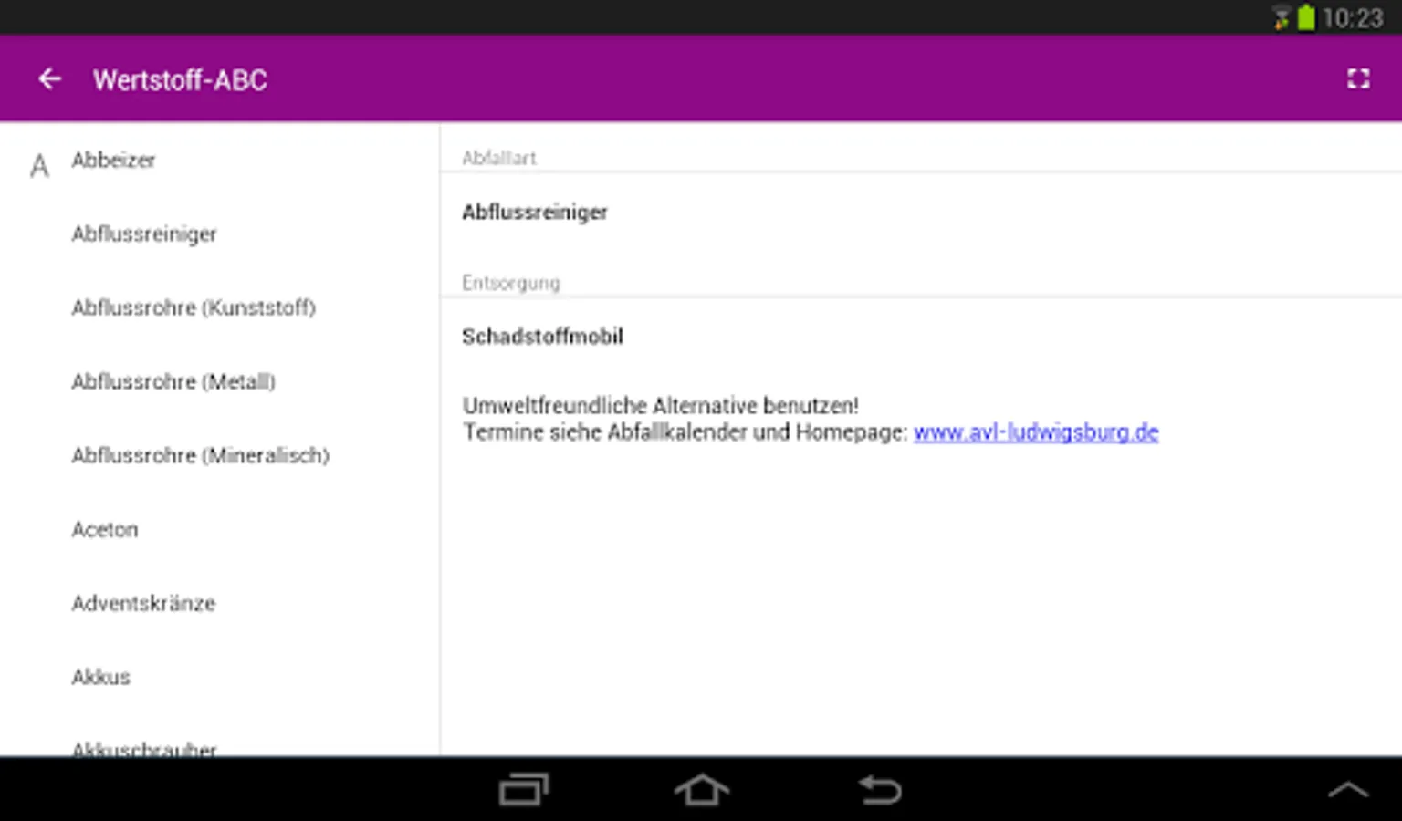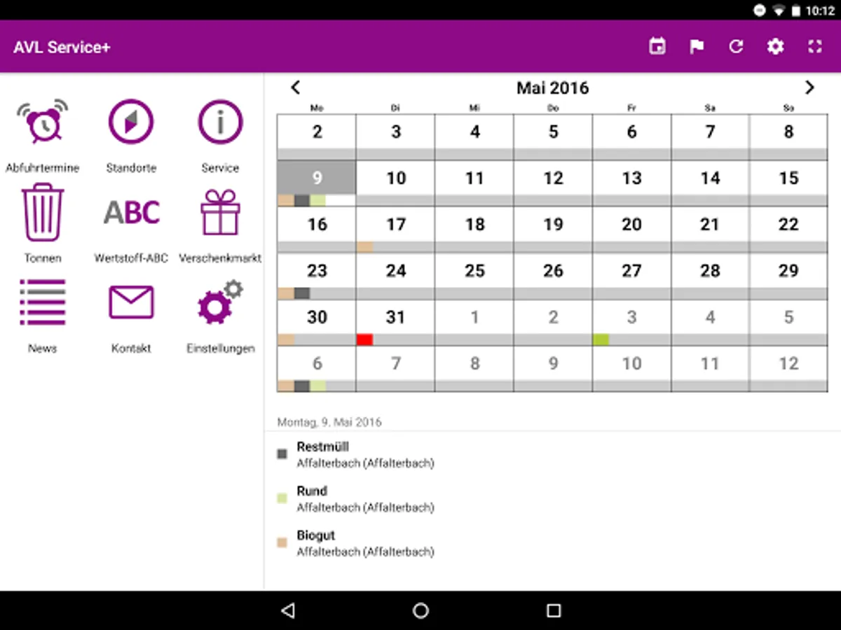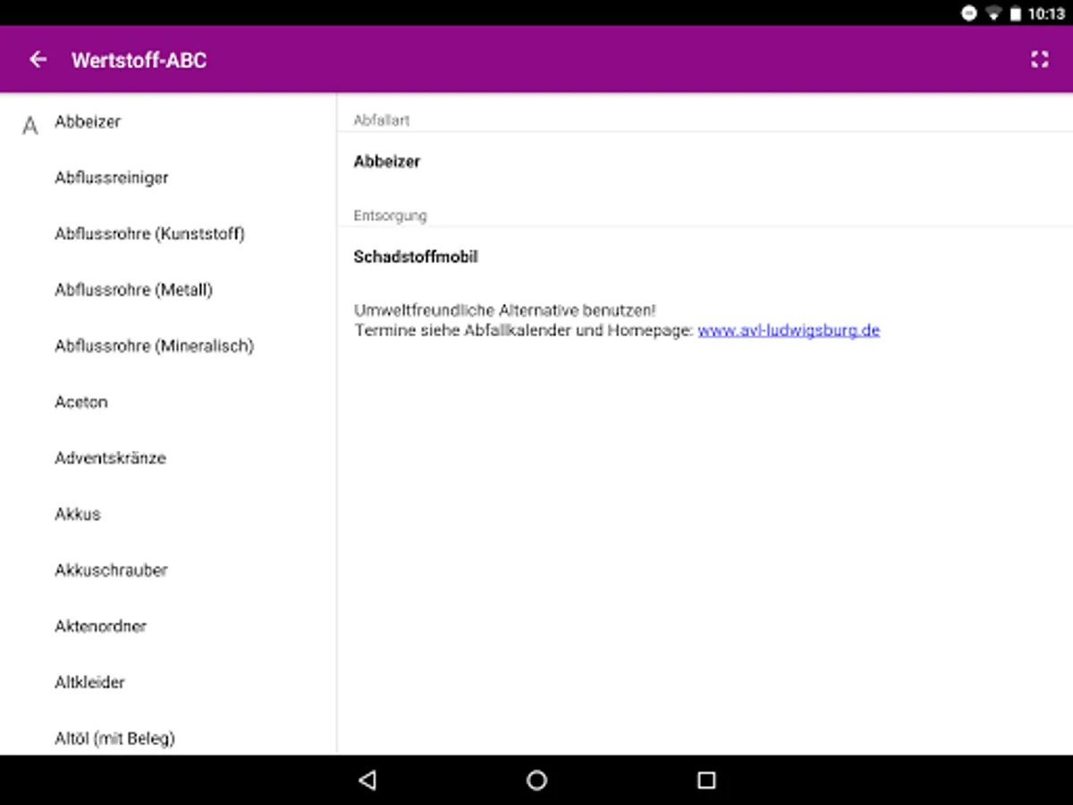 The service for waste disposal in the district of Ludwigsburg will be more comfortable. From now on the free AVL Service + app for download. So you never miss a removal appointment. Simply select Location, Set Alarm date and time and go! The app remembers reliably all appointments for the waste calendar.