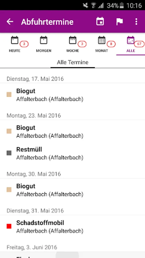Tonne ROUND, FLAT, BIOGUT and residual waste is always delivered on time in view and at the roadside. Besides, we also remind you here at the dates of Schadstoffmobils in your area.