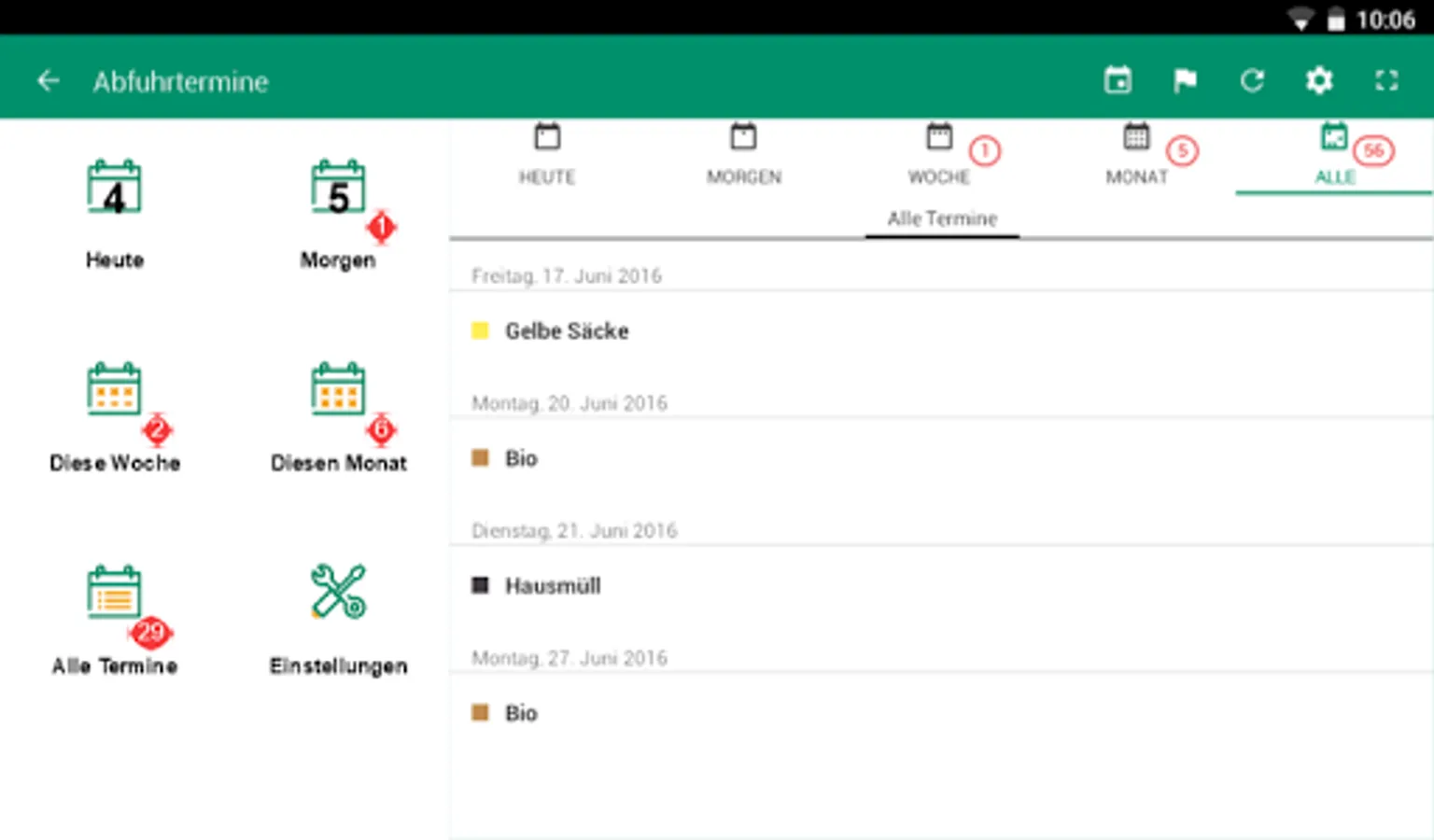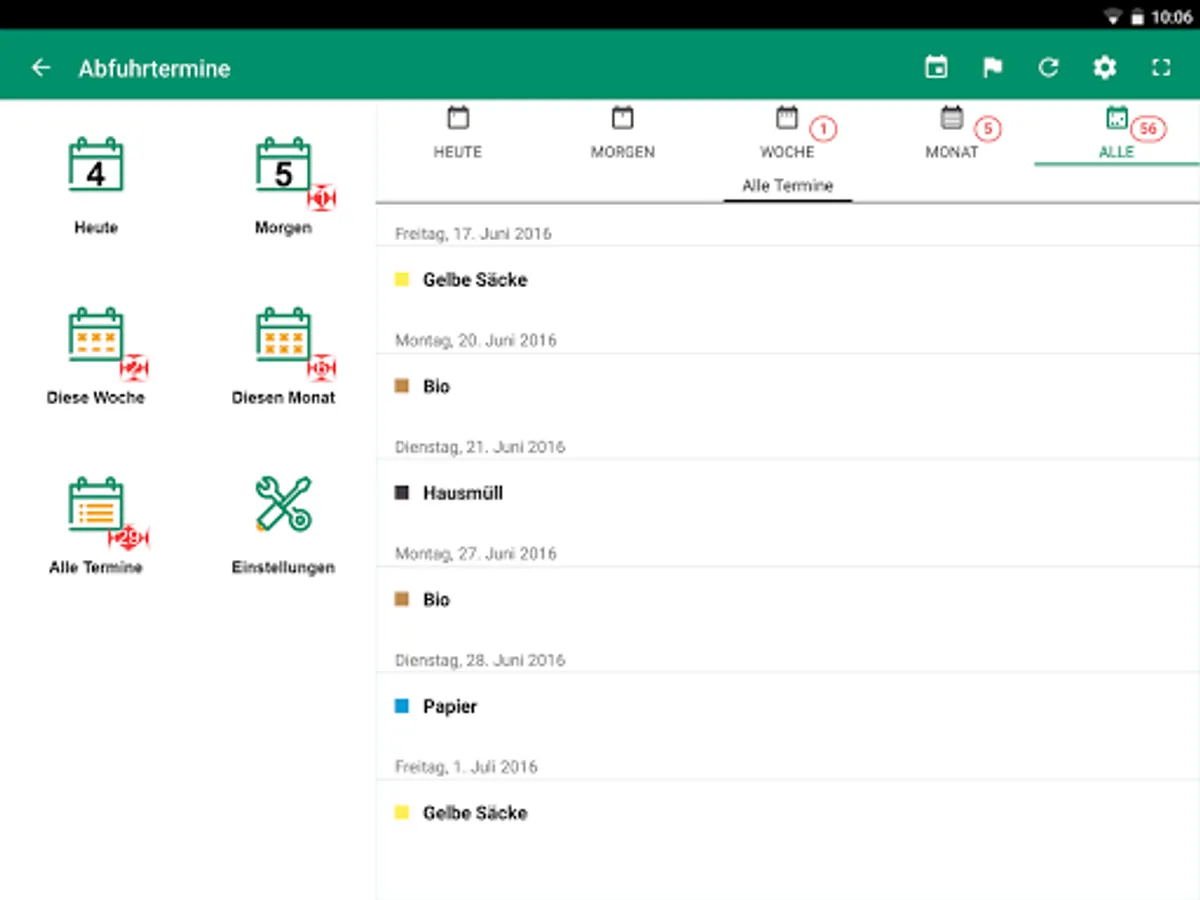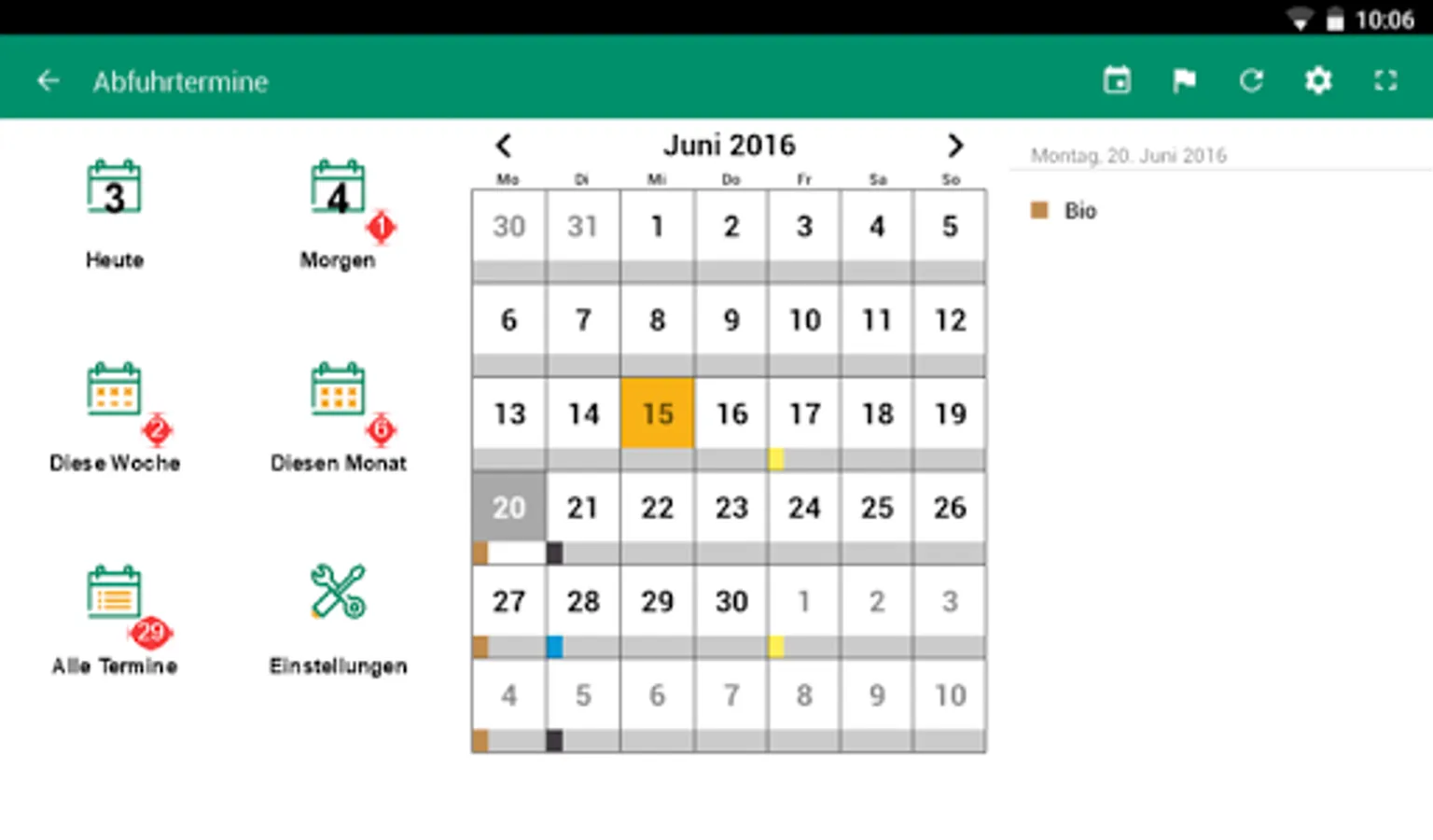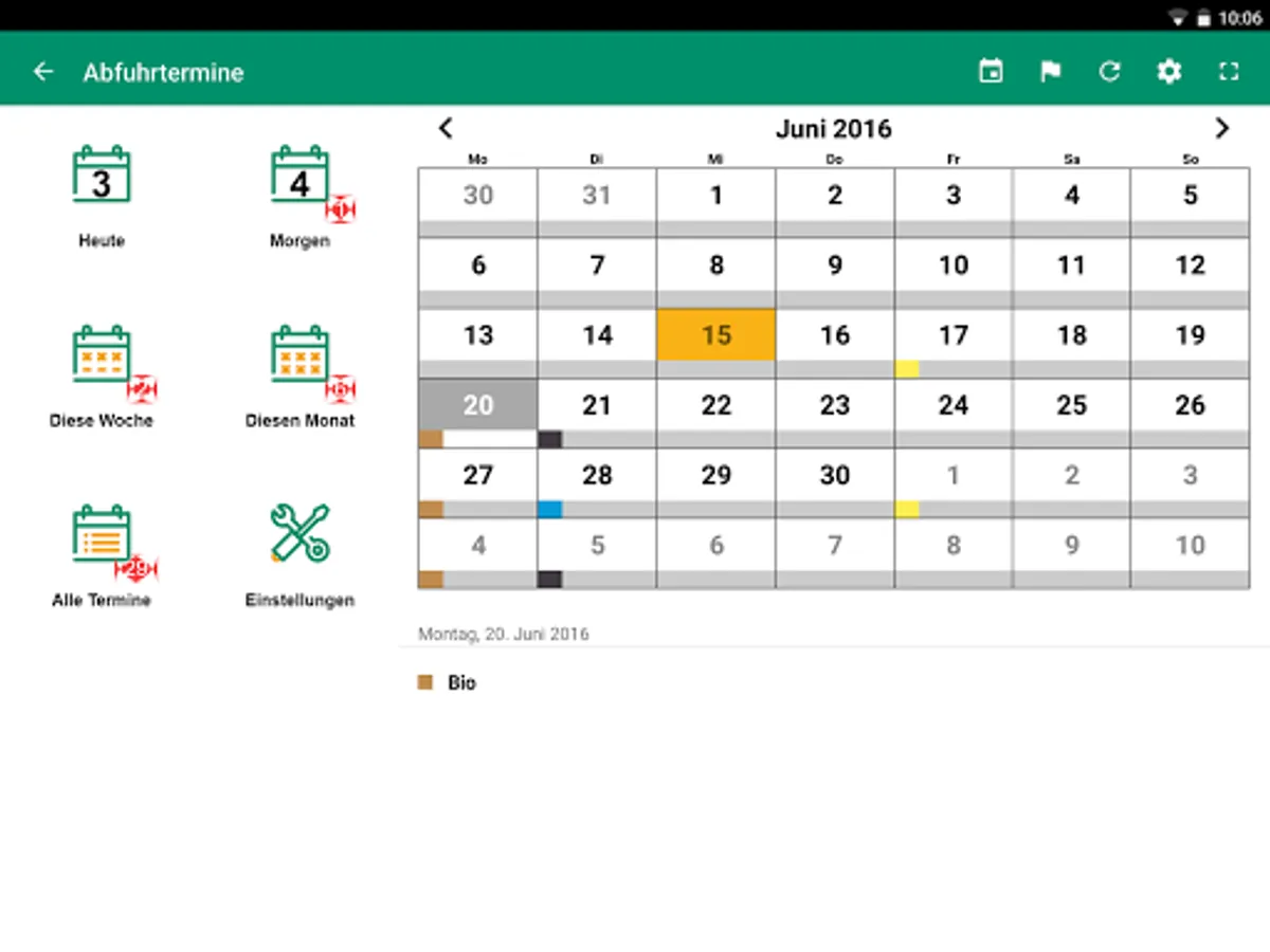 . Waste disposal calendar including memory - possible for more than one position addresses (ideal for property managers and caretakers)