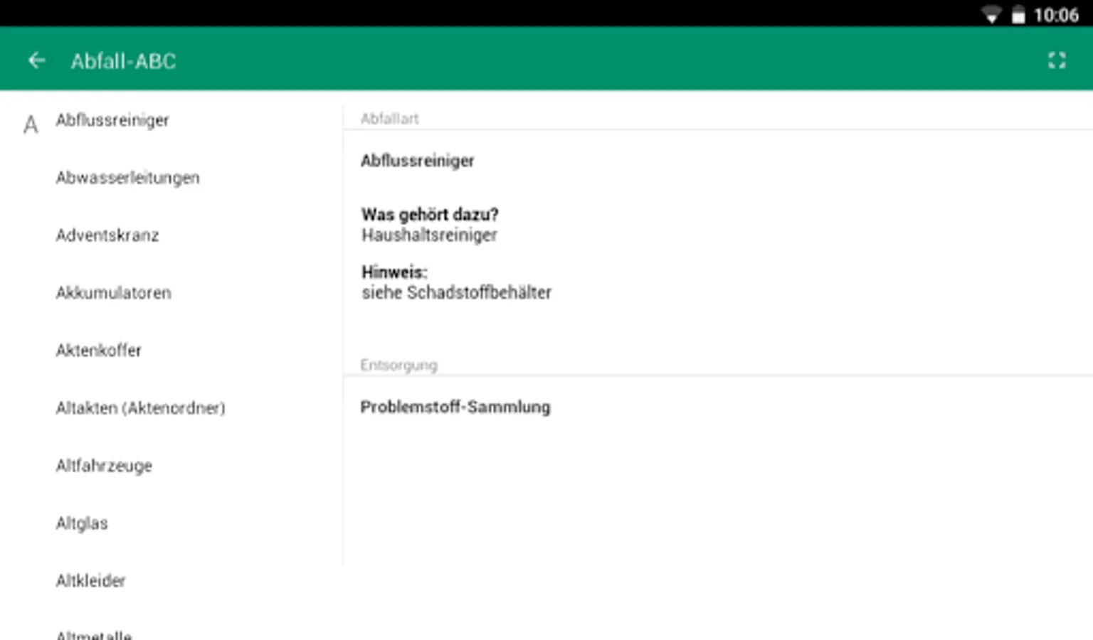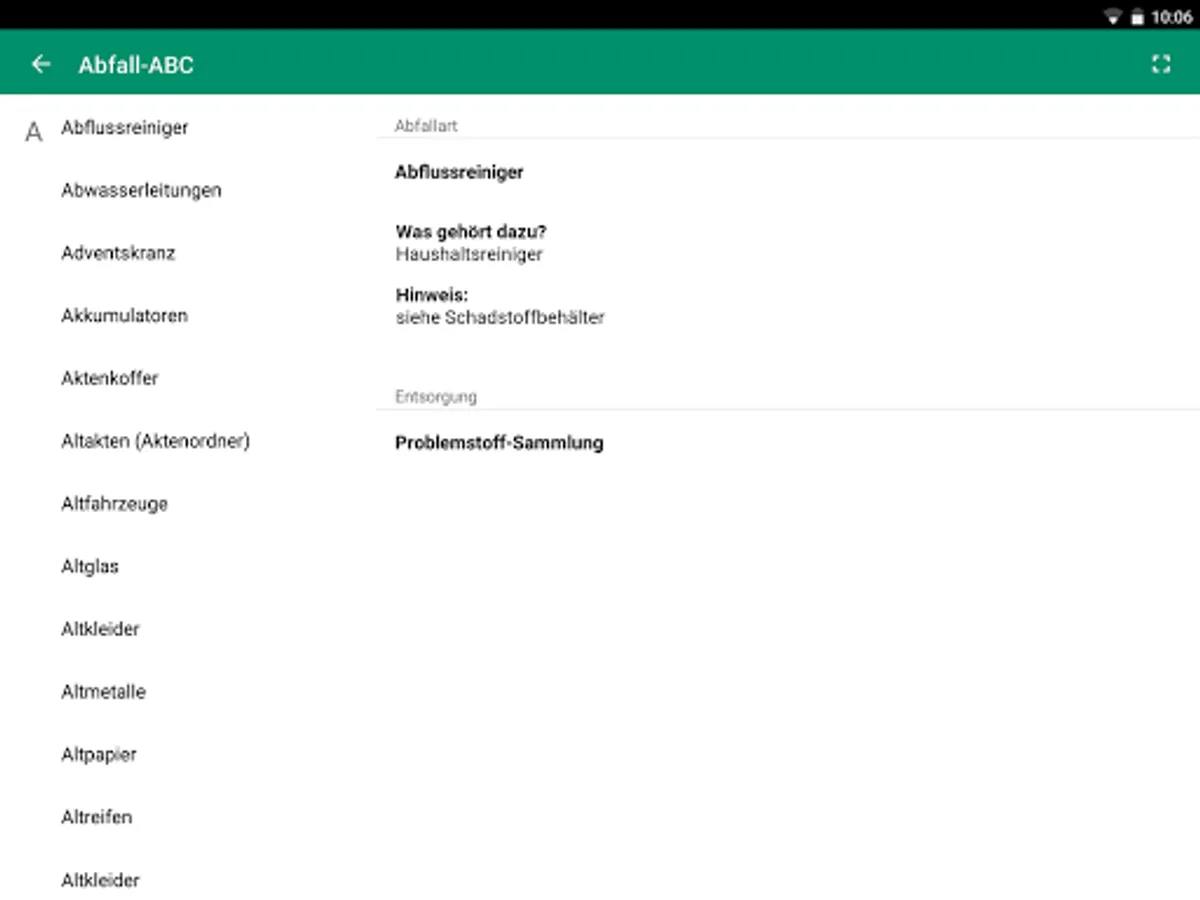 Intelligent waste-ABC (definition of the type of waste, waste tips, costs and waste disposal with directions)