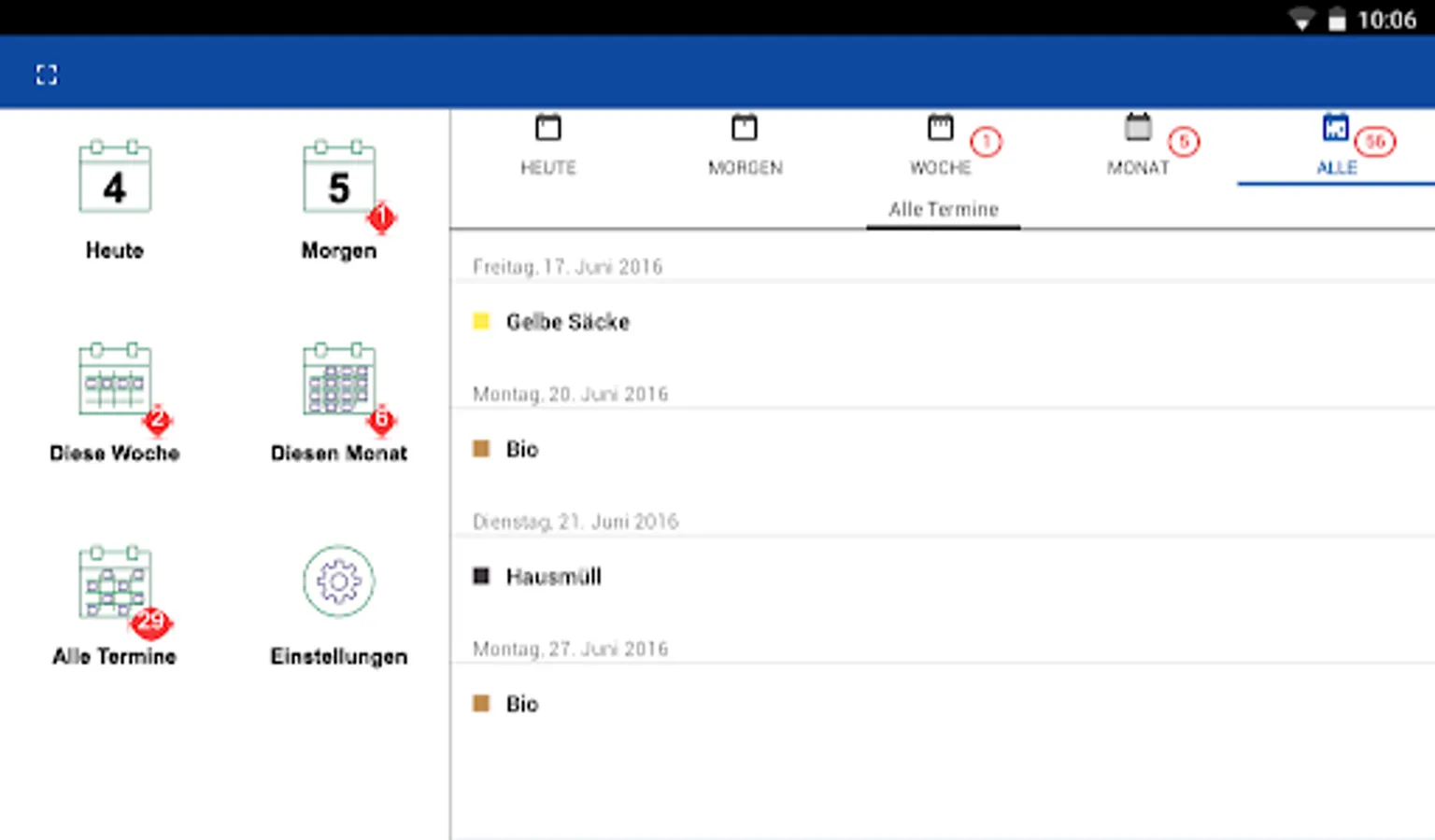 Download the app, install it on your device, optionally register for free. Enter the address for which you would like to be reminded of collection dates. Choose your personal settings for your automatic reminder