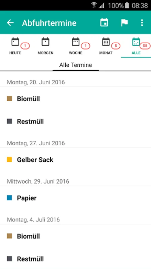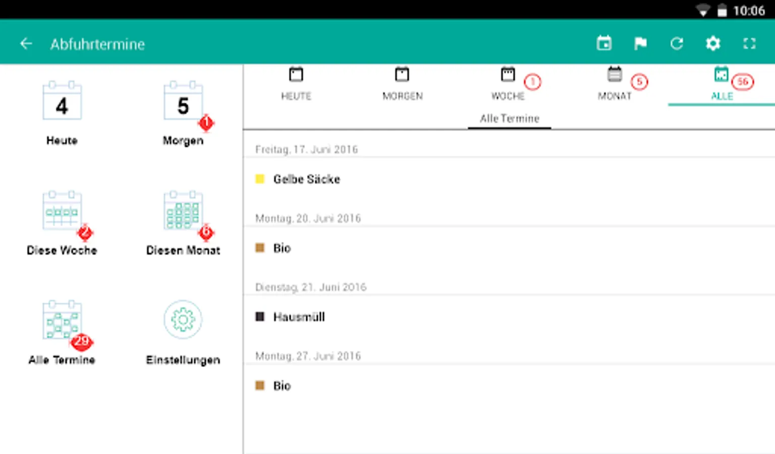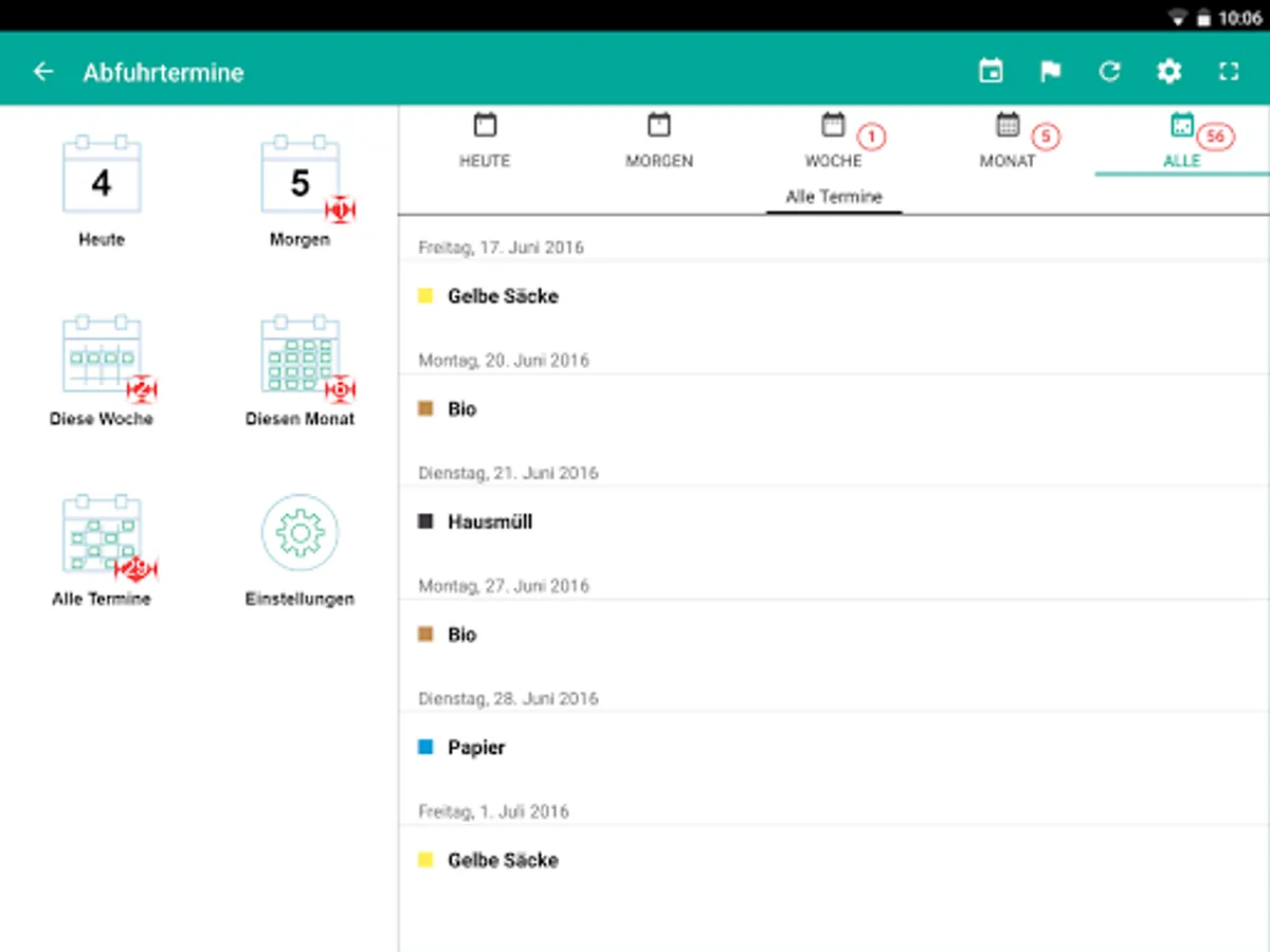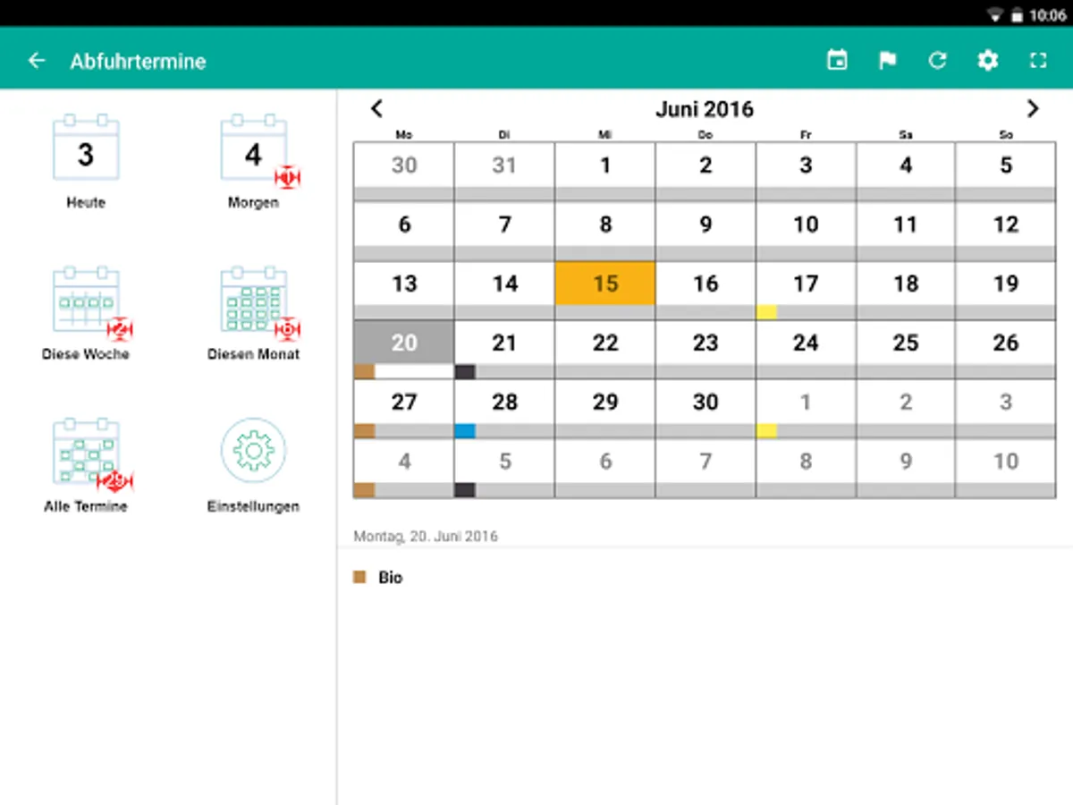 Filter by waste container e.g. only remind you of the disposal of the organic waste bin.