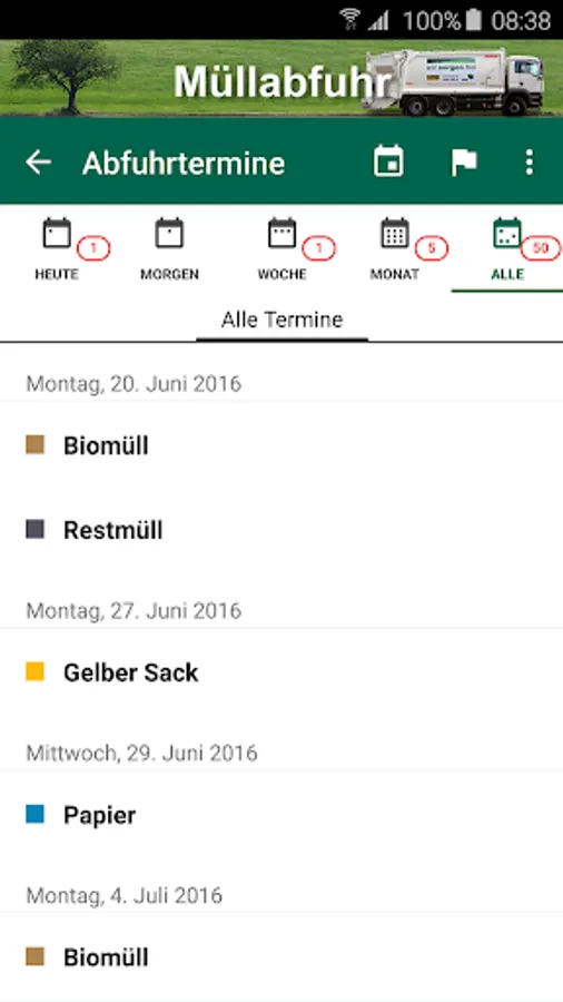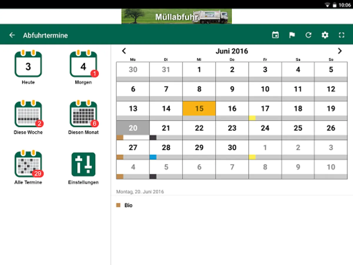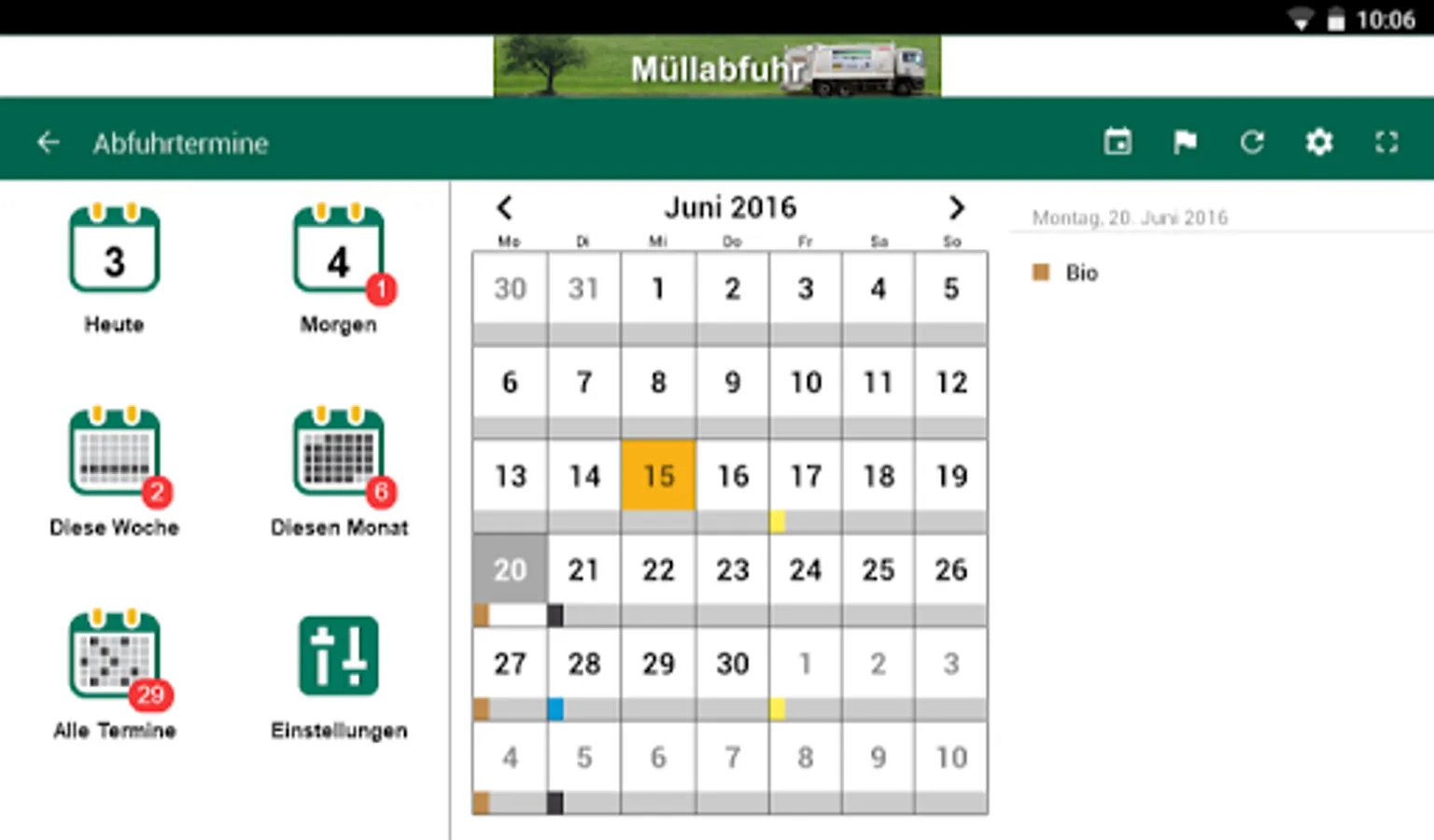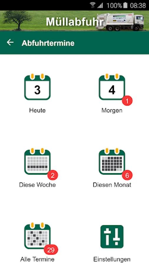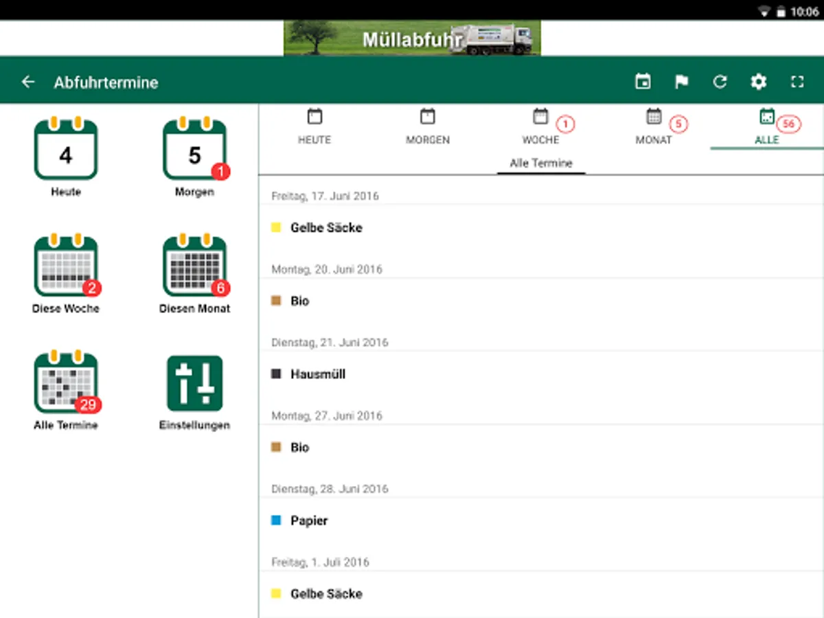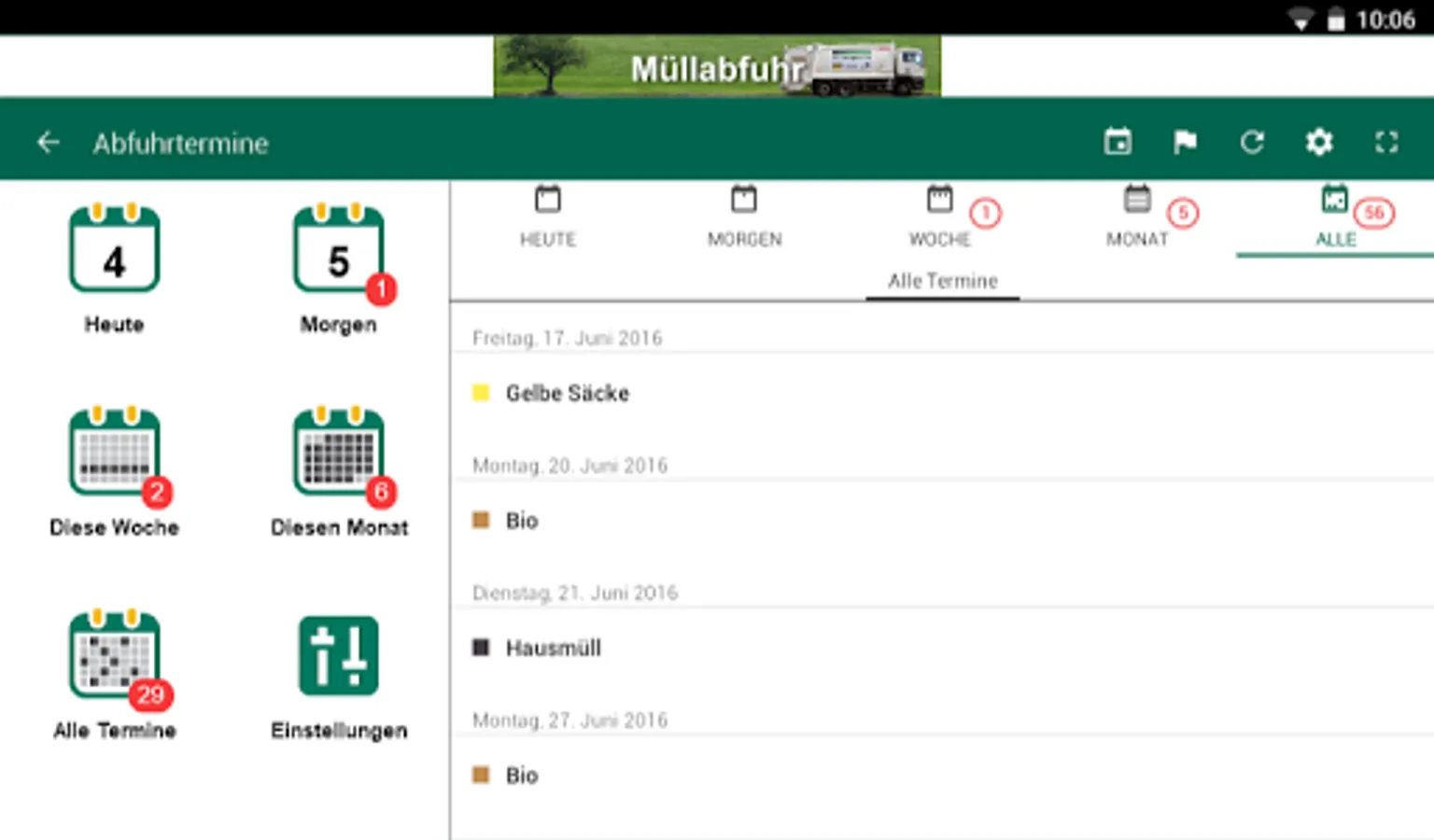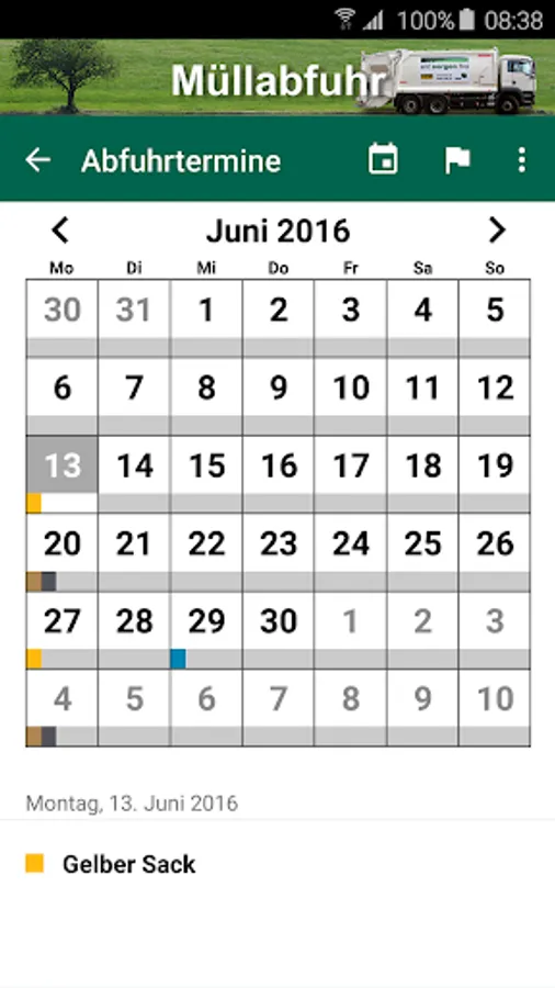 In our app you will find all dates for refuse collection. Select your address and go to the overview. When do you want to be reminded of the individual collection days for garbage, paper or the yellow bag, you decide to configure itself, the corresponding memory functions and enable them to your liking.