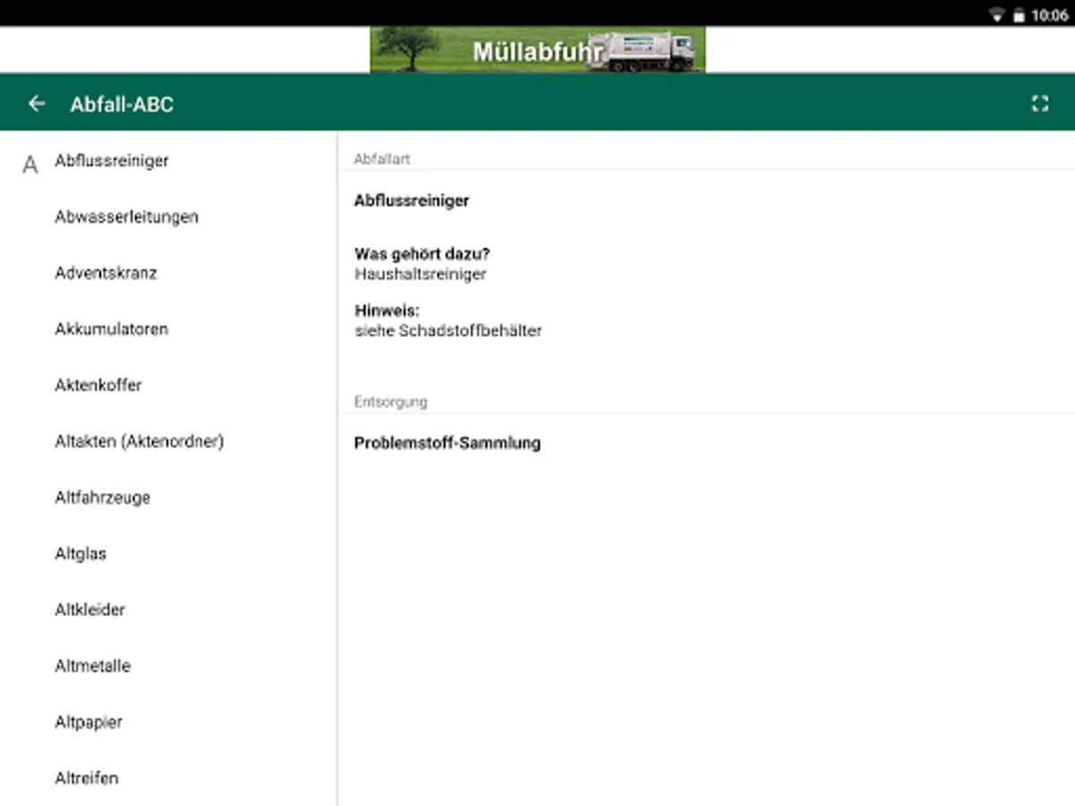 Our container You will find also: We are happy to help you too, whether they are an individual, a commercial or industrial establishment or a municipality. If you dislike surprises and instead profound advice and reliable processing want, they are right here. Using our app you will find the appropriate customer service representative in your area.