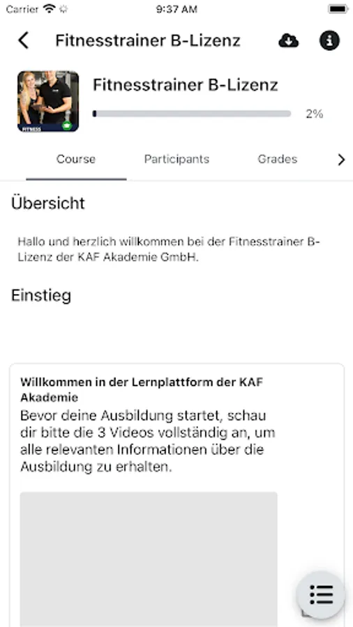 With the KAF Academy learning platform app, you can easily learn for your fitness trainer training on the go. You have the same content available as in the learning platform.