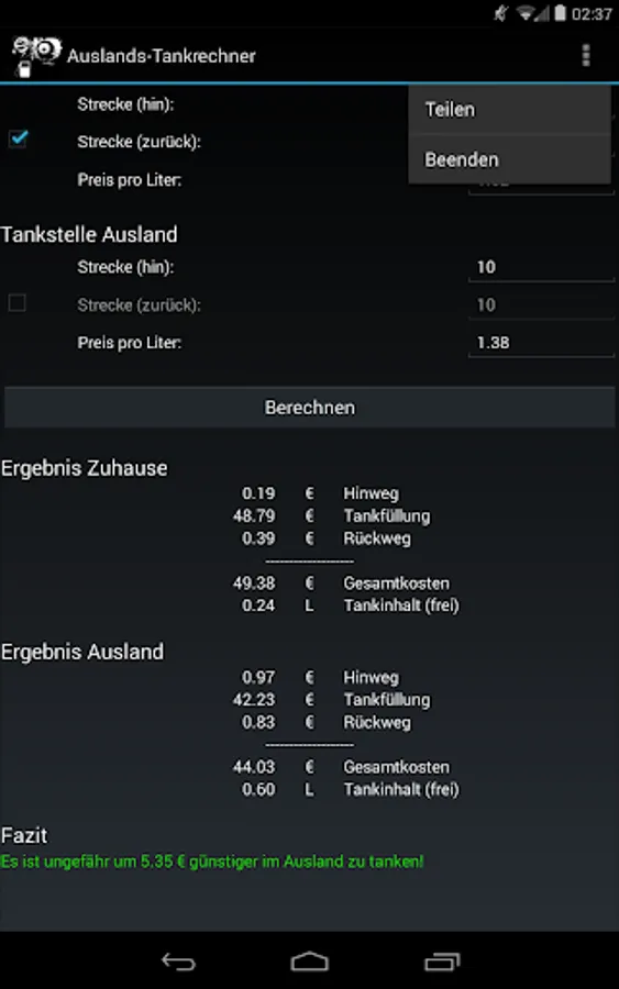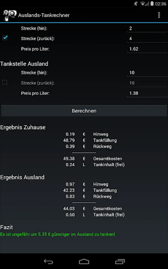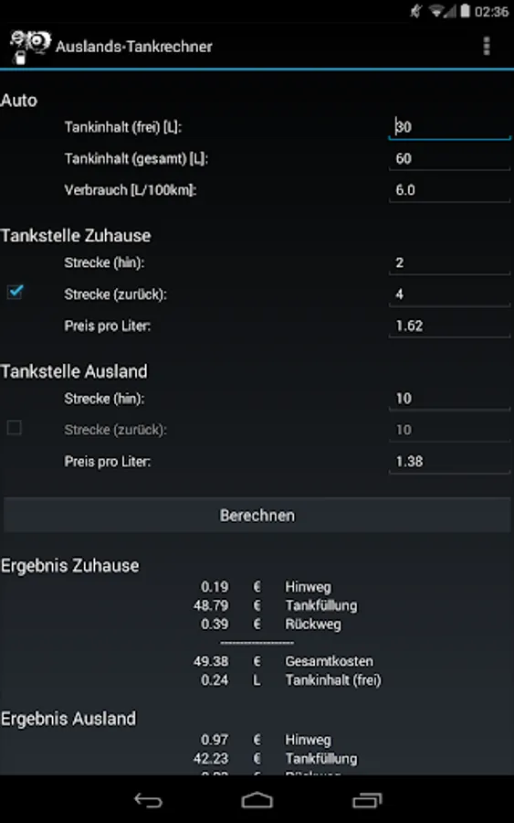 With this tool you can calculate whether it is worth a detour for refueling or abroad to drive or not. For this, the fuel consumption of the car on return trip / detour or its cost will be taken as a guide.