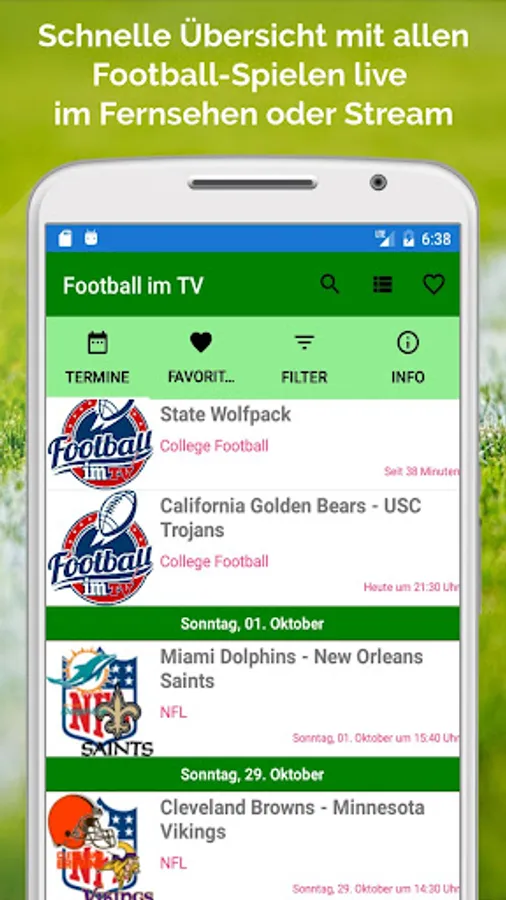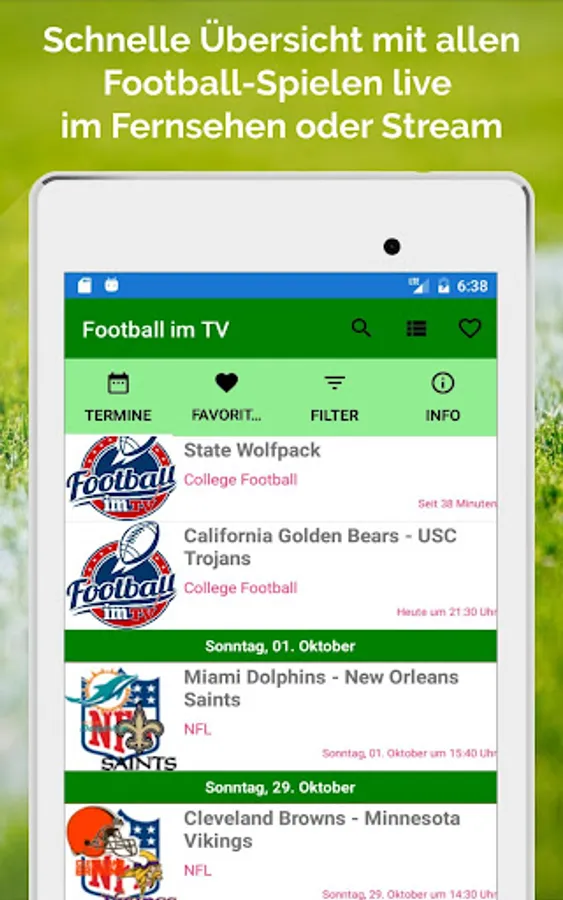 Have you ever been annoyed because football was shown on television and you have not switched on in the game in the middle? That does not happen you with this app. Here you can find all dates on which Football live TV shows.