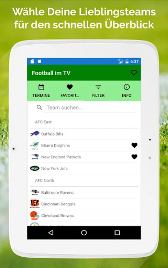 - search. You want to see only the games of a particular day? Or quickly search for a particular team? No problem with the search.