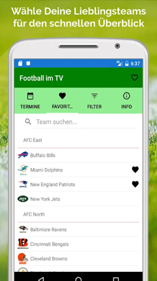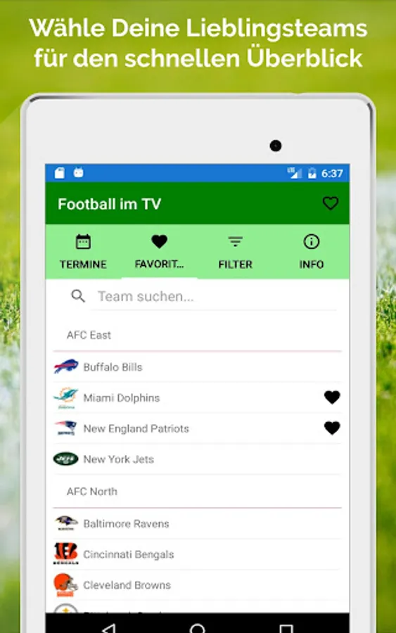 - Favorites. Defined from all teams your favorites, and an overview of your games you with just one click.