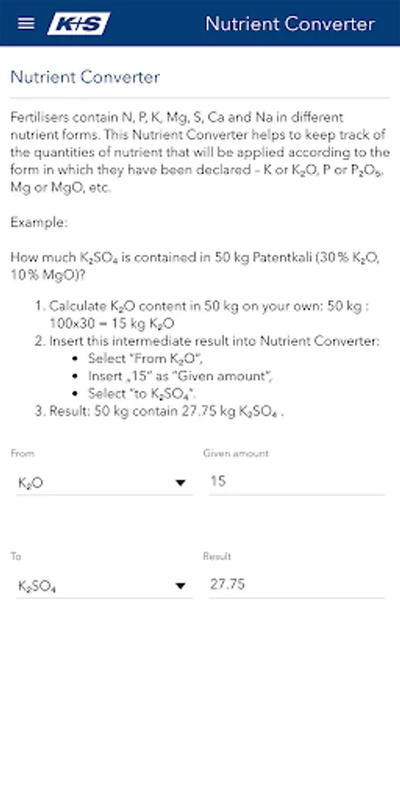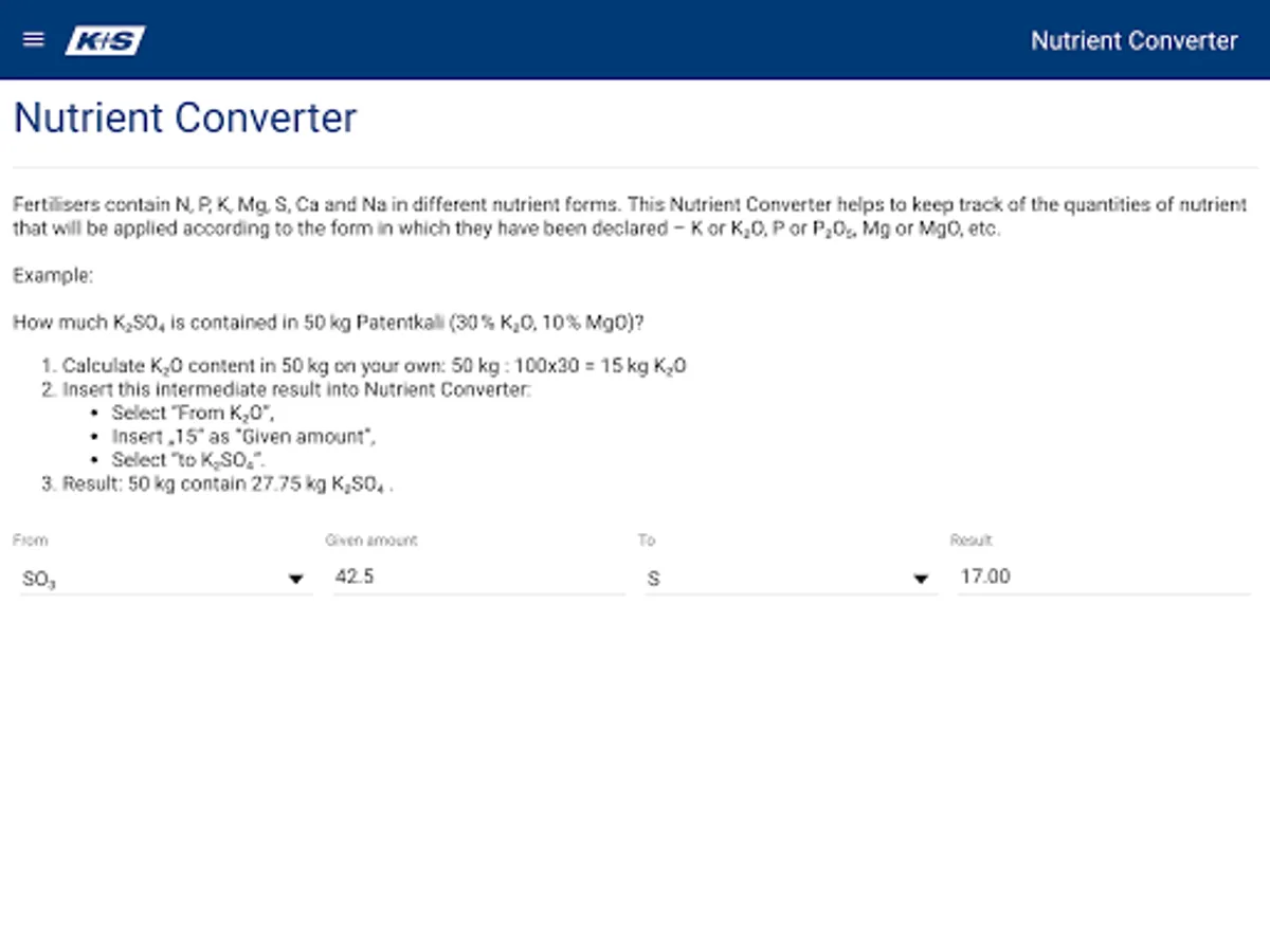 The Nutrient Converter helps you calculate the quantities of nutrients in fertilisers for an optimal application.