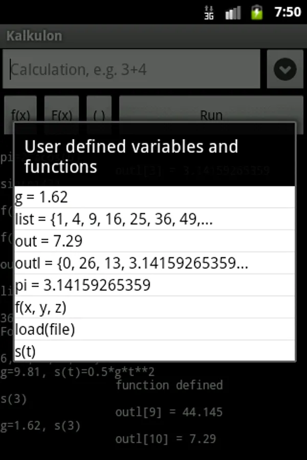 On the Android device the example and help files are automatically copied into "SDCARD/Kalkulon" folder on first start. This is also the working directory for Kalkulon. Put your Kalkulon scripts here, e.g. from your desktop PC.