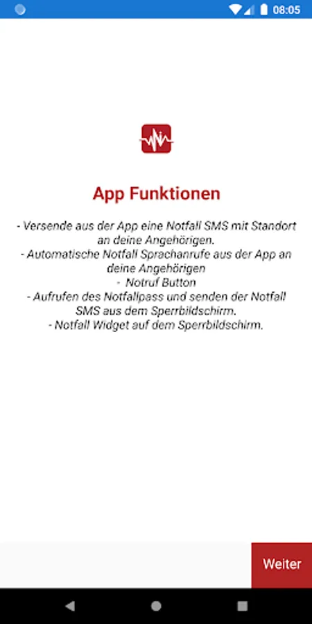 The app uses the AccessibilityService API to give helpers access to the emergency pass in the event of an emergency and to report an emergency without first unlocking the smartphone. Access is via a widget on the lock screen. The widget must first be explicitly activated by the user in the app and the system settings. Relevant assistance is available in the app.