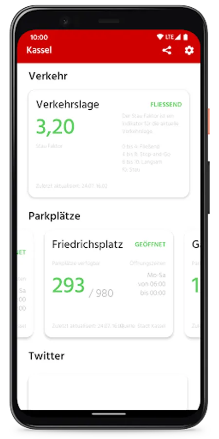 With the Smart City App for Kassel you can display current data for the city of Kassel.