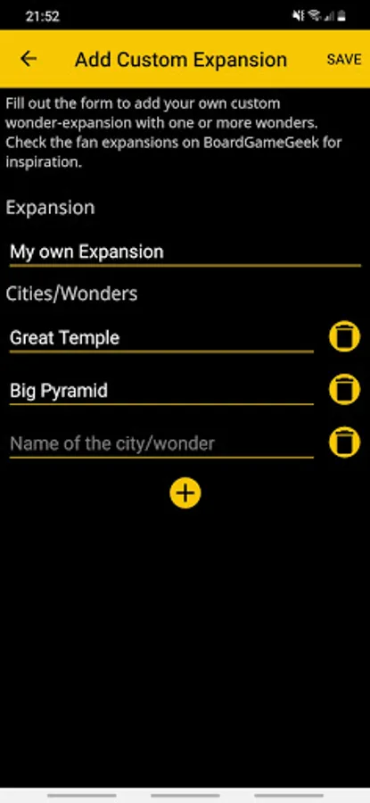 The app includes all wonders from the base game as well as all the wonders from the expansions and promos. You can also add your own expansions with custom wonders.