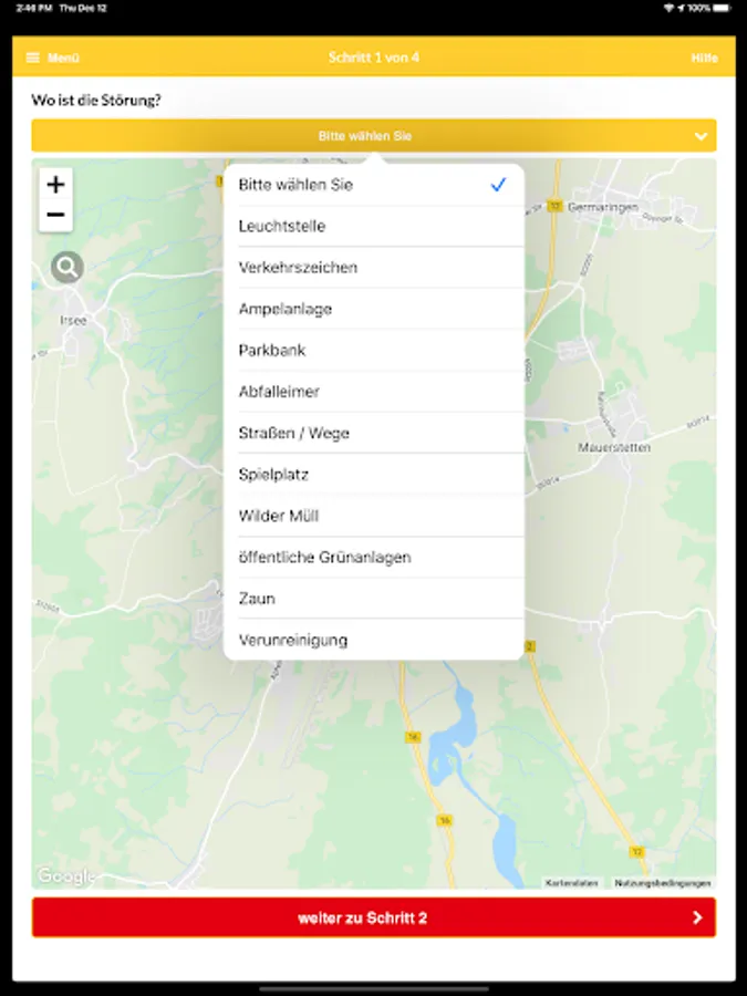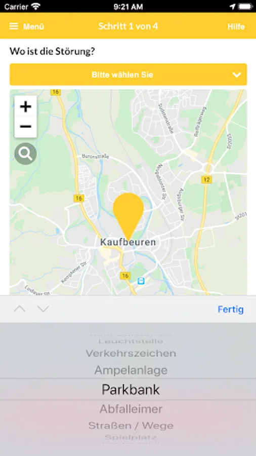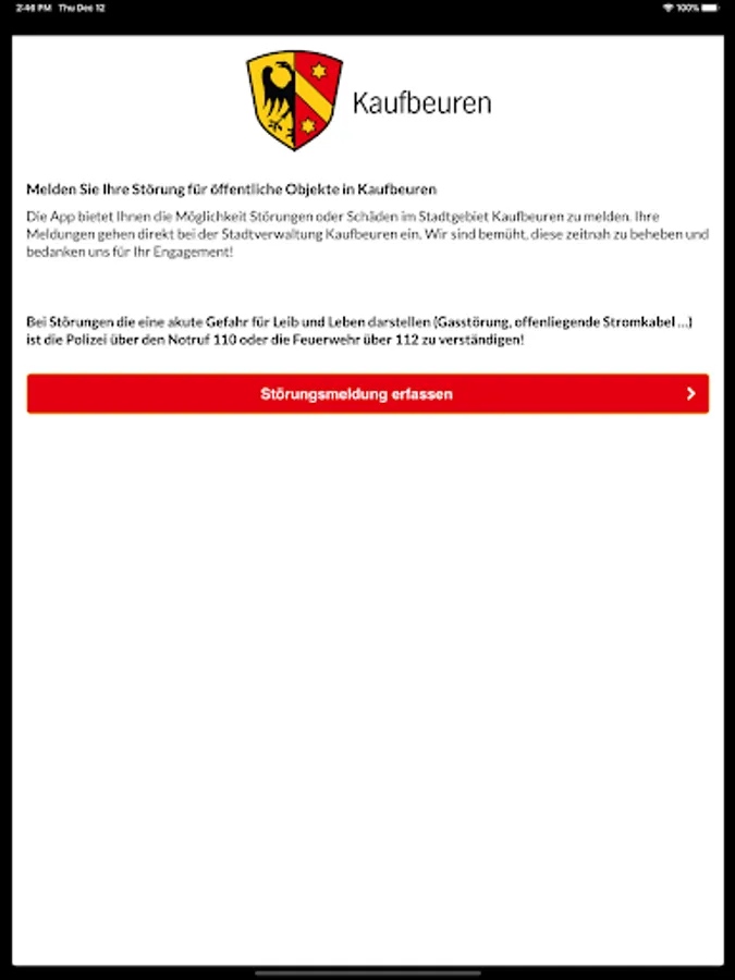 Whether a full wastebasket or a broken street lamp: With the app "Kaufbeuren malfunction indicator" you can quickly and easily report malfunctions in the city area of Kaufbeuren to the city administration!