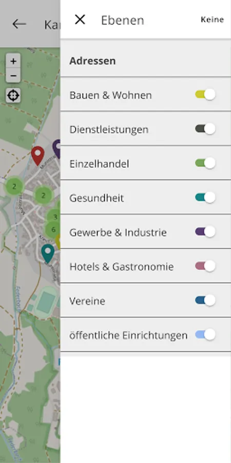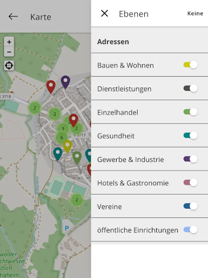 Public institutions, retailers and associations can be found under addresses or directly on the map shown.