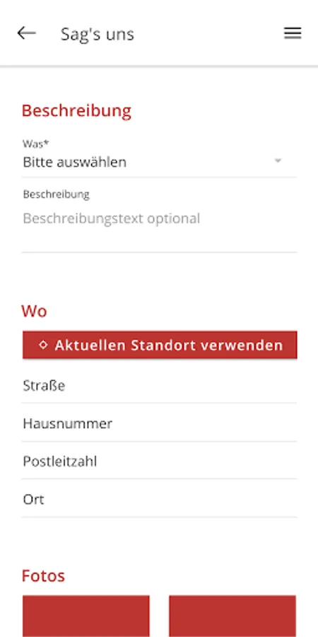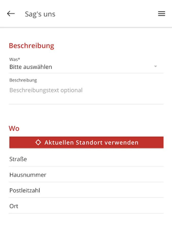 Here you can express your wishes, suggestions and criticism or deficiencies such as Report wild rubbish, road damage, defective street lighting, etc.