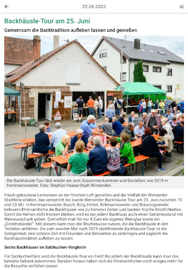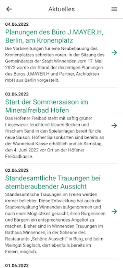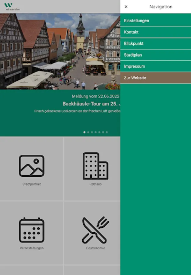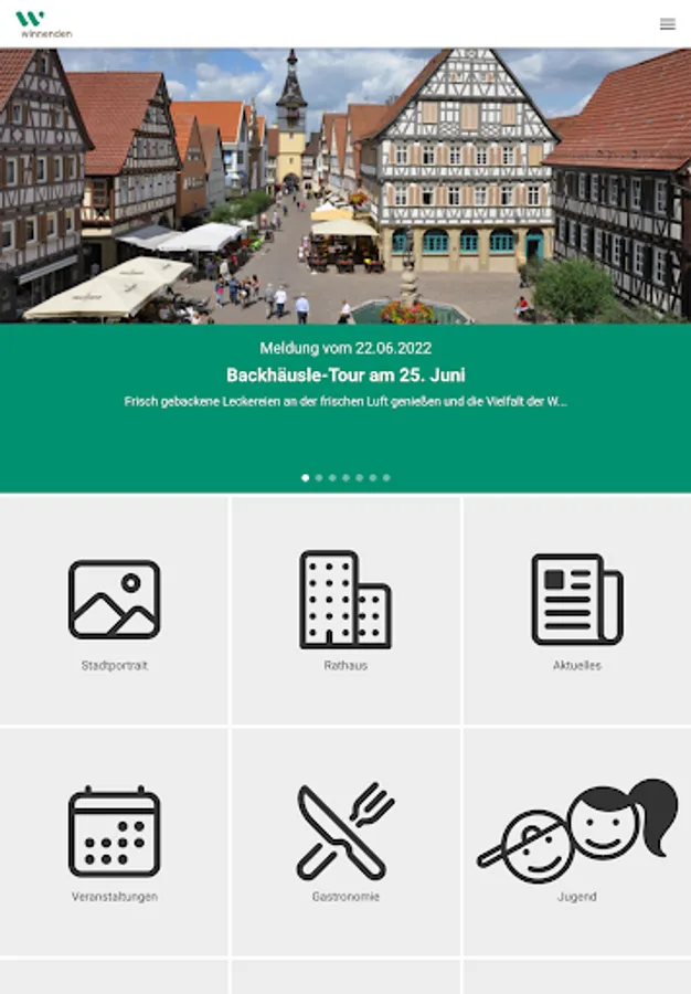 No problem, with the "City-App-Winnenden" you will be fully informed. Under News you will receive city press releases with all the news. Construction site information reveals which streets or squares are currently closed. Both can be set as a push notification so that you do not miss any information. The youth section, with event information and all the news, is also available as a push message. And for everyone who likes to read Blickpunkt on the go, the Winnender Official Journal is available as an online edition.