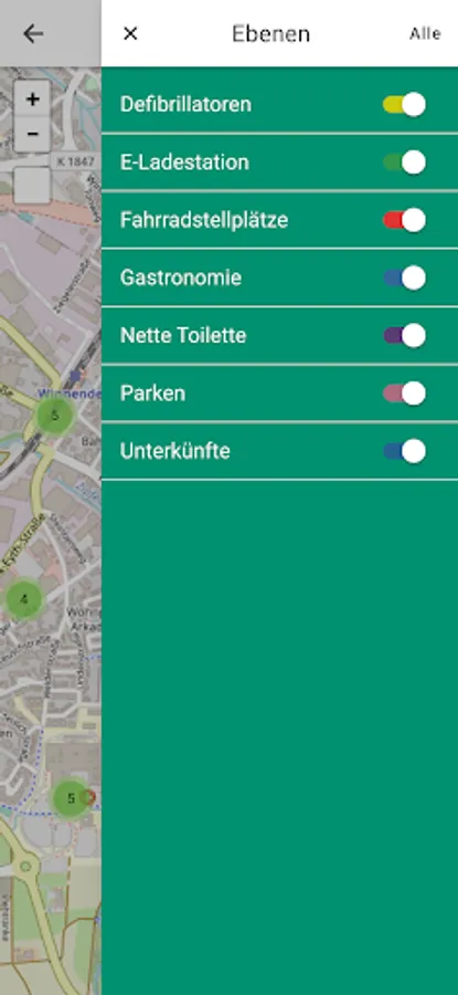 - Gastronomy: with information on e-charging stations, bicycle parking spaces, restaurants, nice toilets, parking and accommodation.