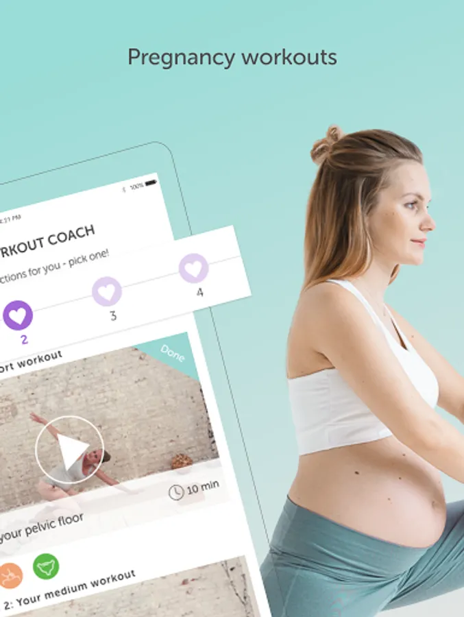 Get the app as a premium subscription, with the complete library of exercises and recipes that will be customized for you and your pregnancy week.