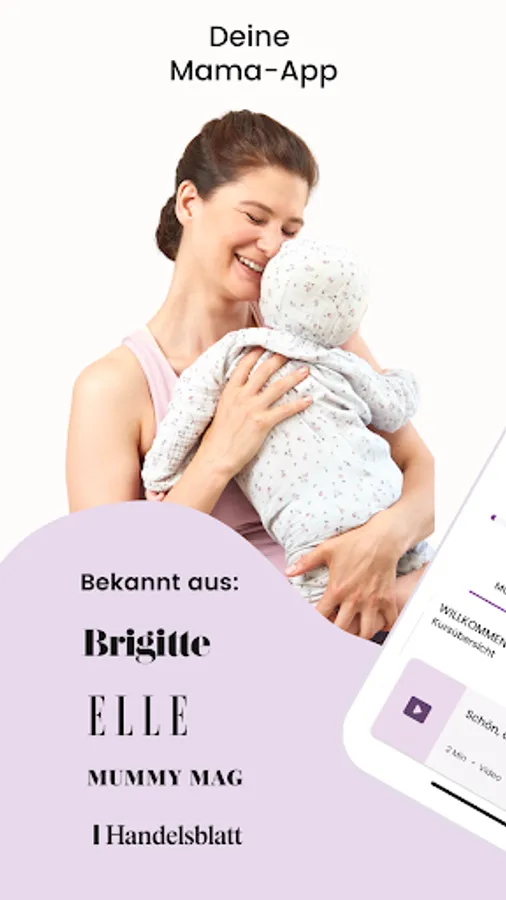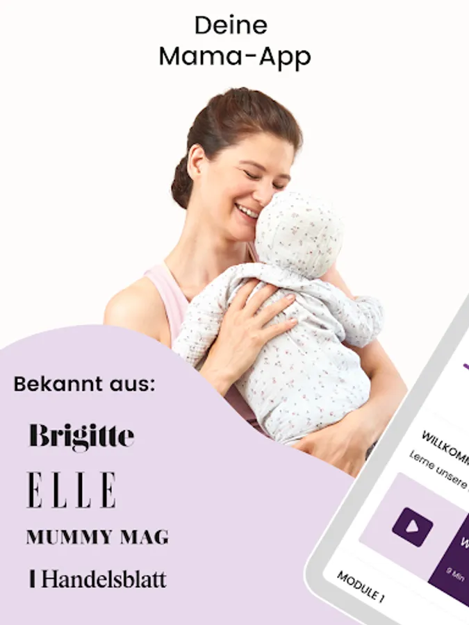The keleya mom app is your companion after the birth in childbirth until the end of the first year with baby. You will find new articles, videos, podcasts and meditations with expert knowledge and tips for your new everyday life with baby every week. Perfectly tailored to your needs.