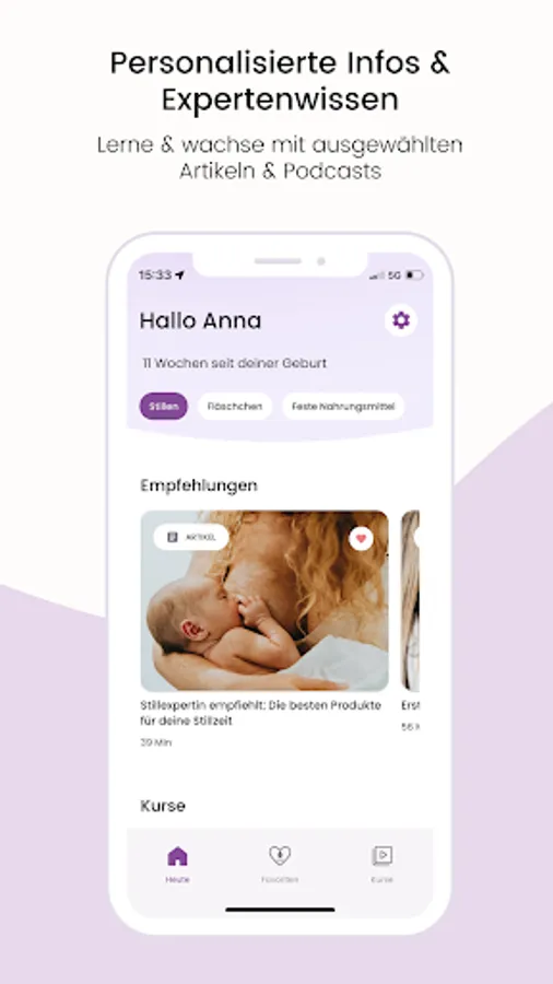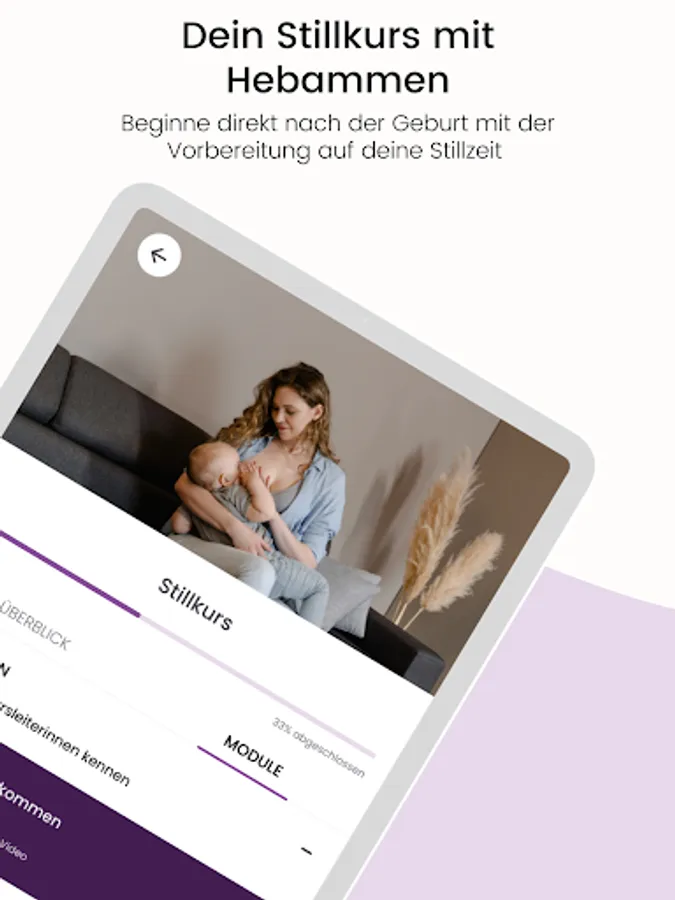Discover other valuable courses for a relaxed time in childbirth and a happy parent partnership directly in the mom app. Look forward to a monthly growing range of courses and find exactly the support you need.